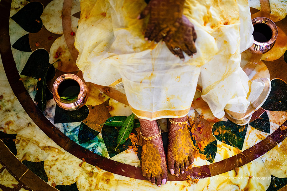“The only way I could imagine my haldi was with lots of yellow marigolds! No color is more fitting for this function, and no other flower adds that authentic mood than marigolds. Orange was used generously as part of the setup and touches of purple were brought in to offer some contrast and pop to it all.”
