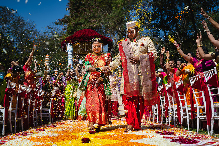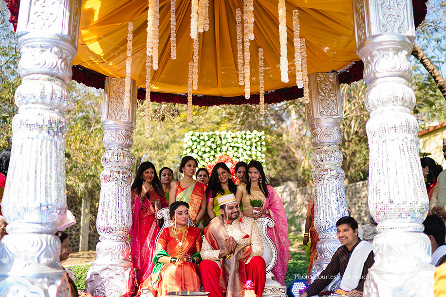 “My mother thought Mandar and I would make a good match, so we exchanged numbers and started talking. He is a chef who hails from Mumbai but lives in Canada where he has been based for the last five years. I am an architect from Nashik but was living in Pune. I was a little hesitant at first as to how we would get along given our different professions, the physical distance between us and time difference of our locations. However, it turned out that we had a lot to talk about, especially because he is a chef, and I am a complete foodie. We spoke for hours on end, and one fine day, when we were talking in the wee hours of the morning, there was a magical moment in which we confessed our affection for each other. Little did I know that he had flown down to India to surprise me! We met and hit it off instantly. Our families fixed on a date, and so began the wedding planning process.”