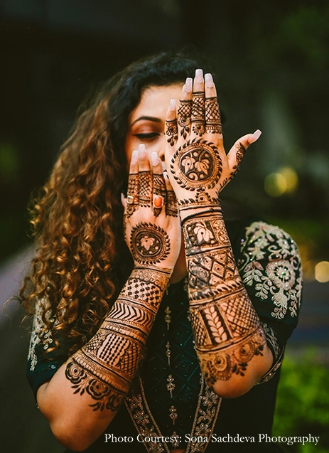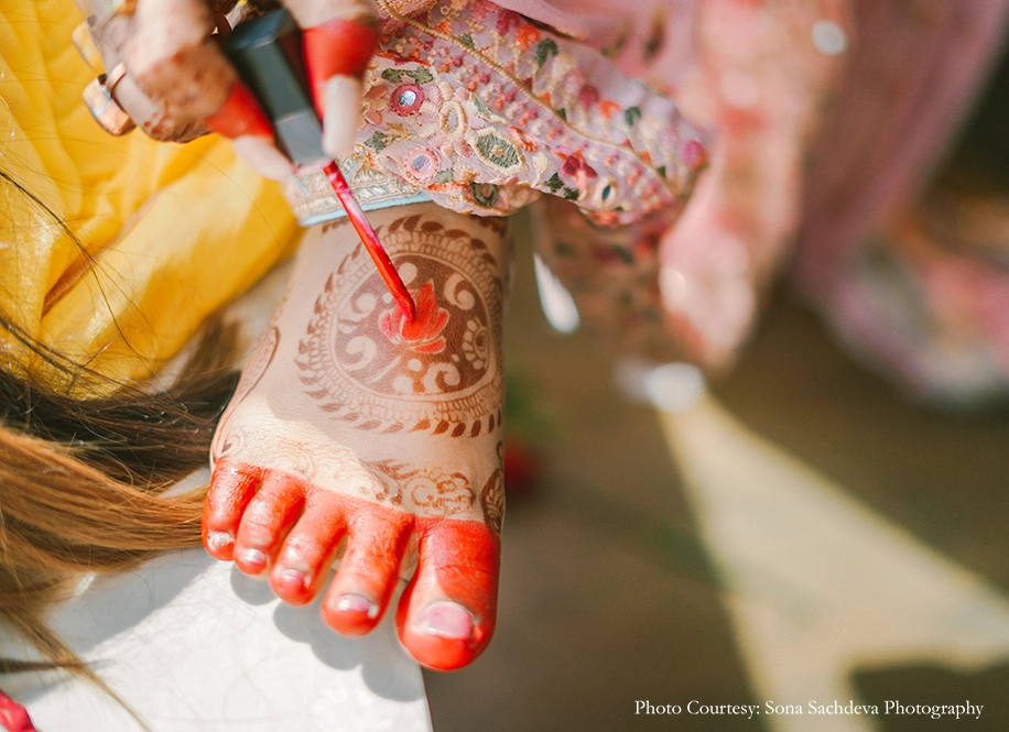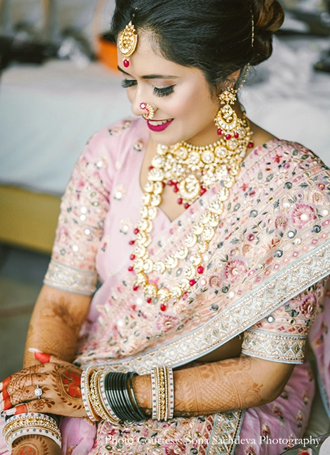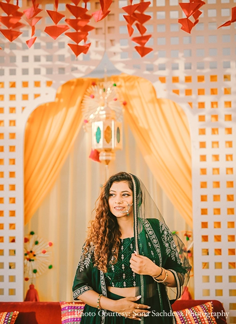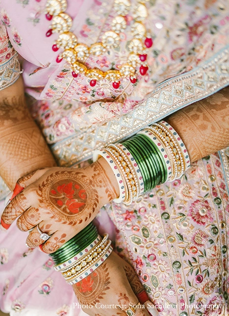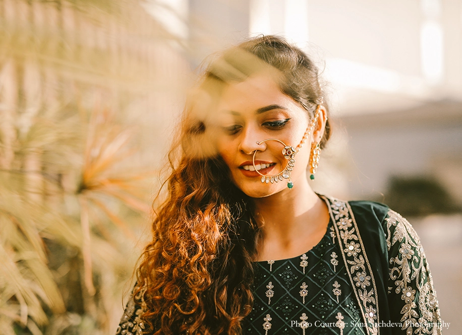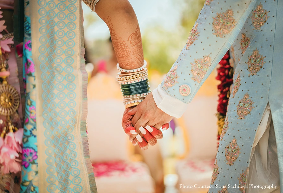 The intimate celebration was captured in vivid detail by the team of Sona Sachdeva Photography. The bride designed the couple’s wedding ensembles herself, with bespoke intricate embroidery and detailing.