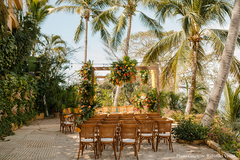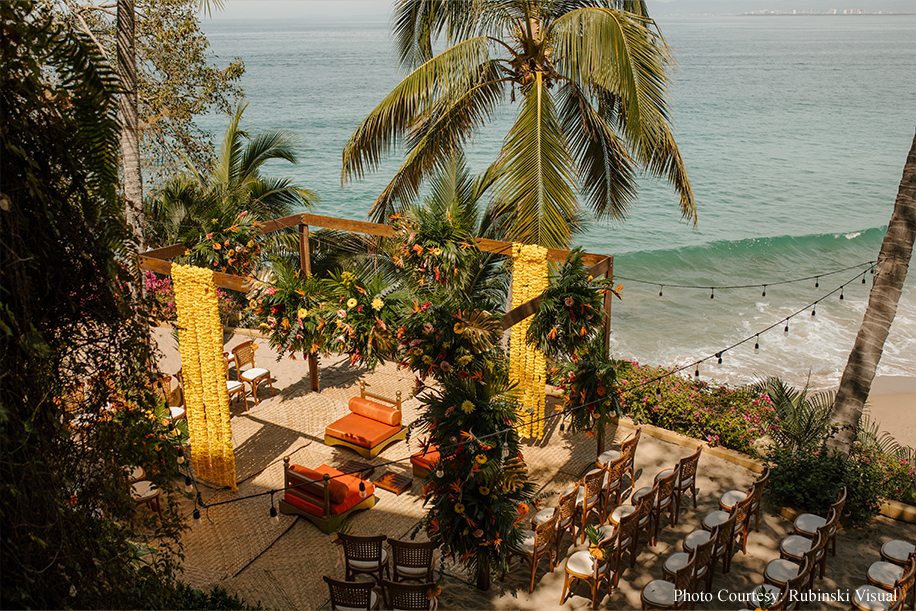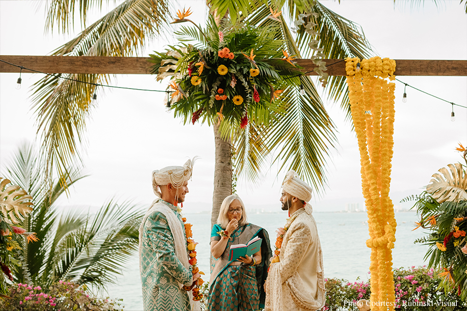 Troy Bjerkness and Ansh Paranjape’s wedding by the coast of Mexico brimmed with vibrant hues that showcased the beauty of Indian weddings. Inculcating elements of the local Mexican traditions, the couple embraced a profusion of cultures as they took the plunge into marital bliss.