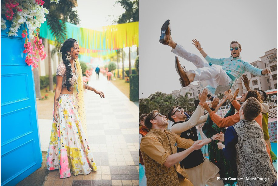 Bride’s Outfits: Nadine Dhody (Welcome Dinner), Akanksha Gajria (Mehndi), Mrunalini Rao (Sangeet), Sabyasachi and Aastha Narang (Wedding)
