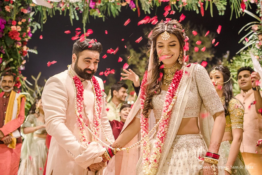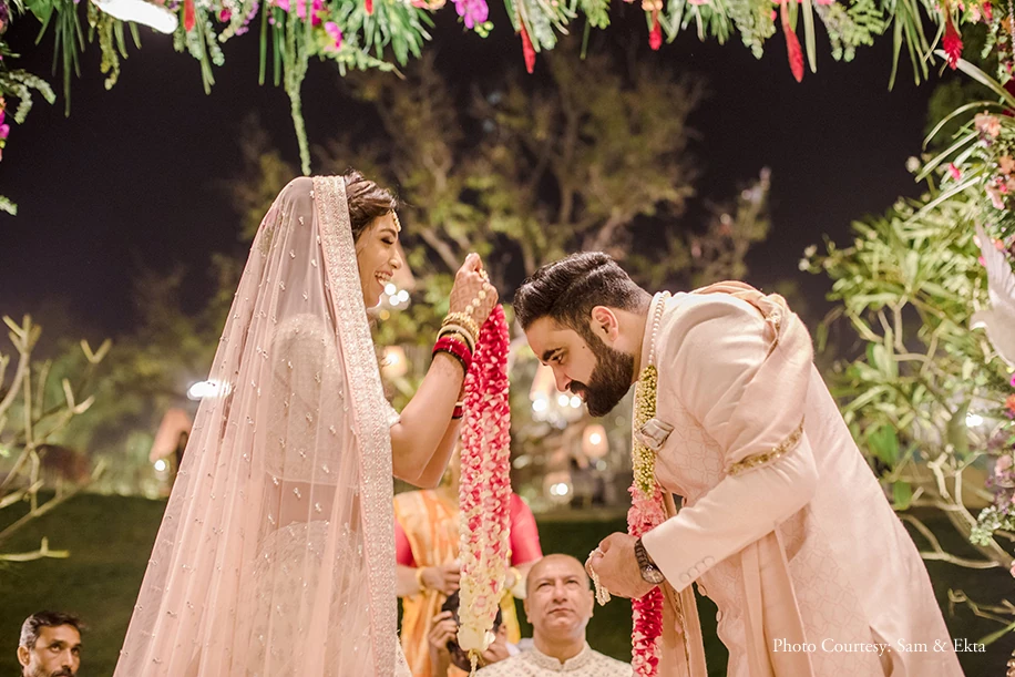 High-school sweethearts Twishaa Bhagat and Aadit Dalal commemorated more than a decade of love with a beautiful intimate farmhouse wedding that was as awe-inspiring as their story. Weddingsutra Favorite – Sam & Ekta captured the tender nuances of their love and revelries in stunning shots.