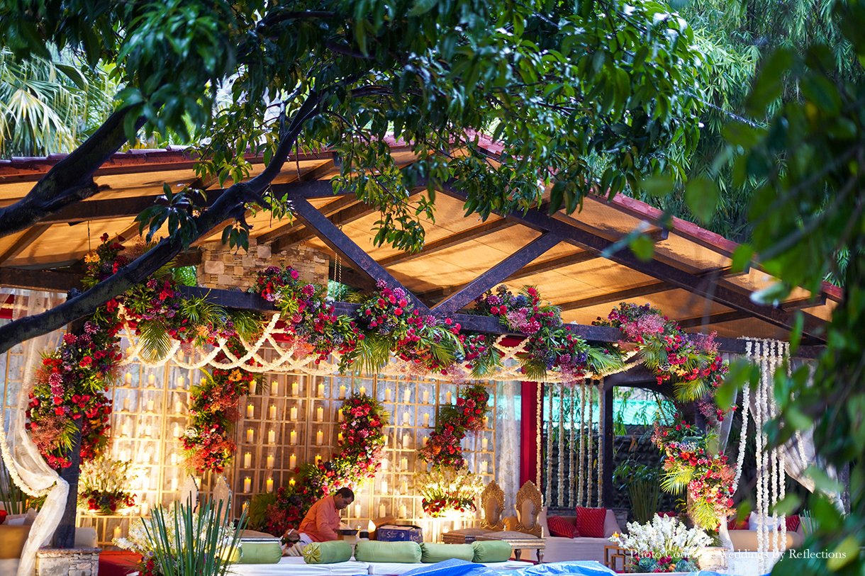 The couple started the festivities with a cozy Mehndi soiree with those closest to them. The delicate decor of flowers, foliage, and candles saw soft hues for a warm, intimate ambiance, and the evening progressed with live music, dancing, and tons of laughter. The bride and groom looked effortlessly regal in matching violet ensembles.