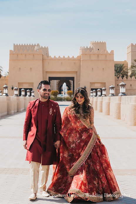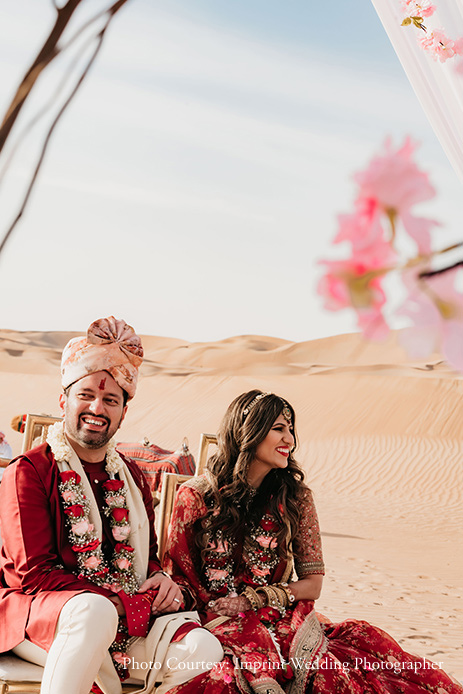 Unita recollects, “Our wedding day was incredibly serene with the elegant mandap in the center and the quiet desert surrounding us. We took our phere with our family members surrounding us and the whole ceremony was so cheerful.