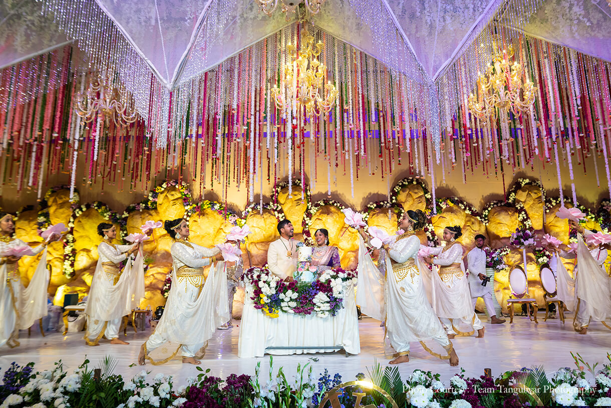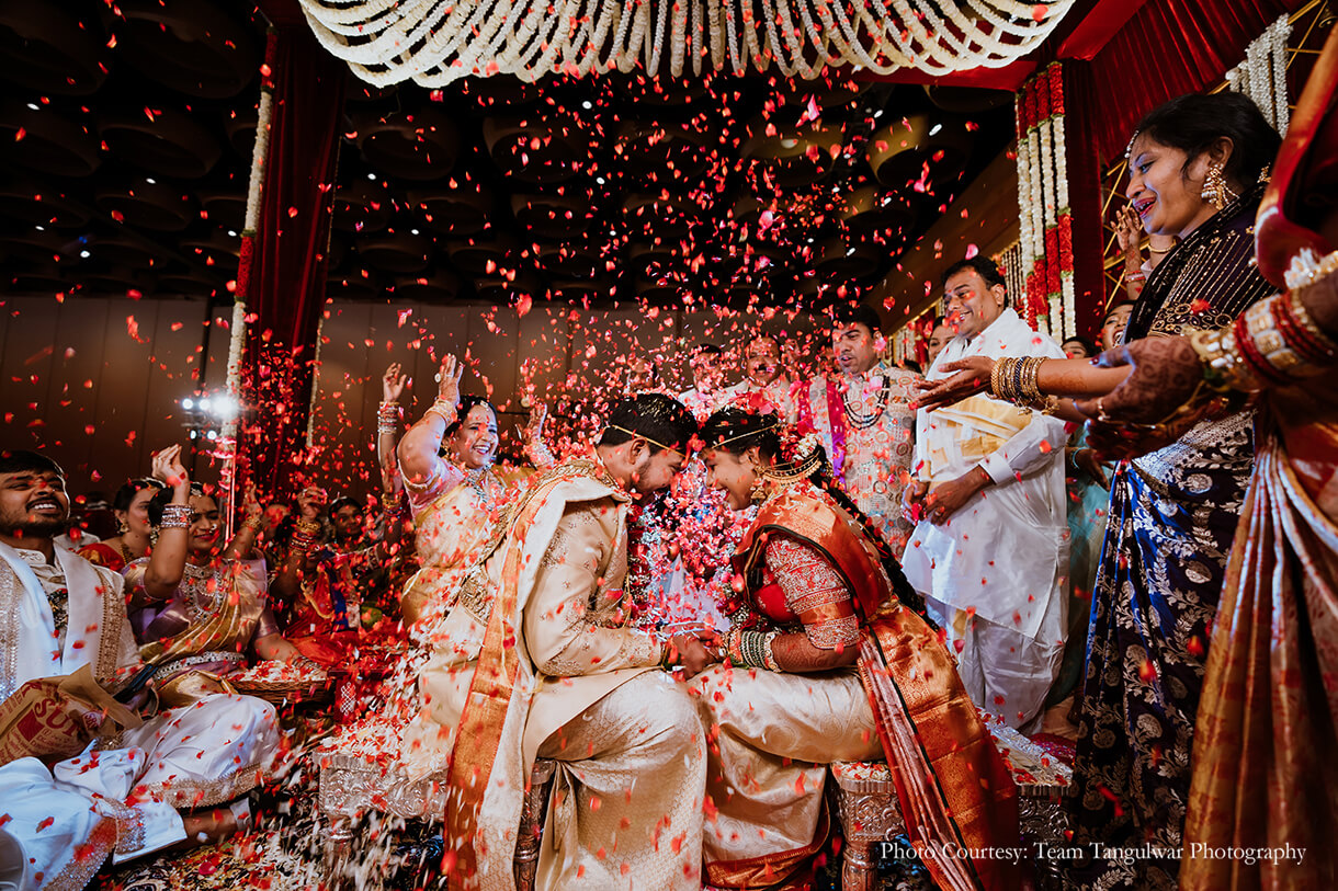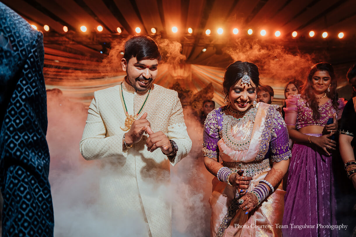 Replete with grandeur and tradition, Vaishnavi and Yashwanth’s three-day wedding festivities exuded warmth and paved the way for adorable candid moments. Designed by WeddingSutra Favorite – Purple Tree Event Solutions, this wedding was a vibrant celebration.