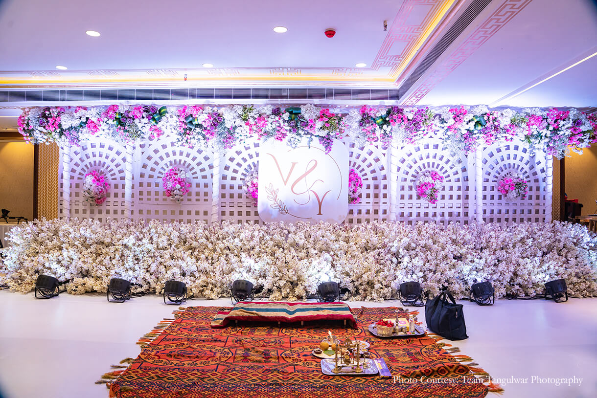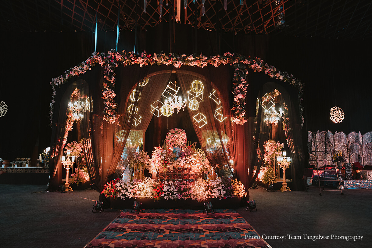 Kicking off the festivities were two engagement celebrations. On the first day, the couple completed the pre-wedding rituals while on the second day, the celebrations experienced a level-up in grandeur. With floral installations, crystal chandeliers and vintage candelabras – the event was an extravagant one.