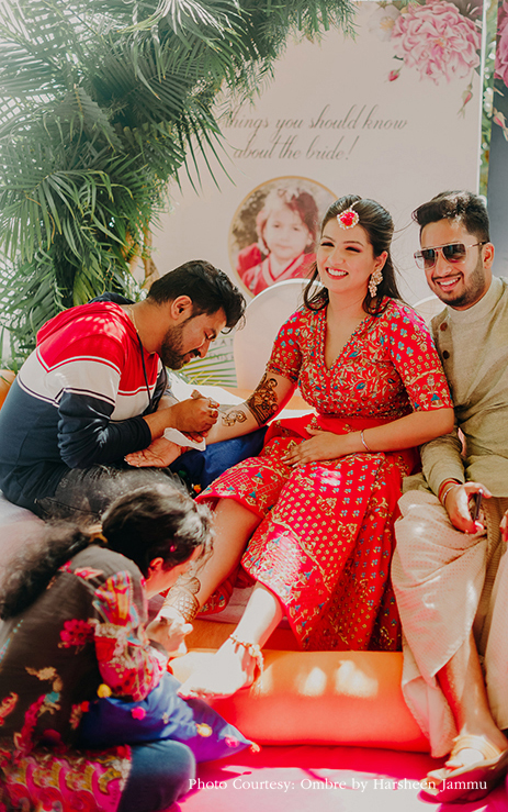 “A wedding is one of the most precious events in a couple’s life, and the one way to relive those moments are through the photos and videos. That’s why we wanted someone who would do justice to the emotions and joy that our celebrations entailed. The team of Ombre by Harsheen Jammu were our photographers and they had us floored with their clicks! Their work only makes our memories sweeter!”