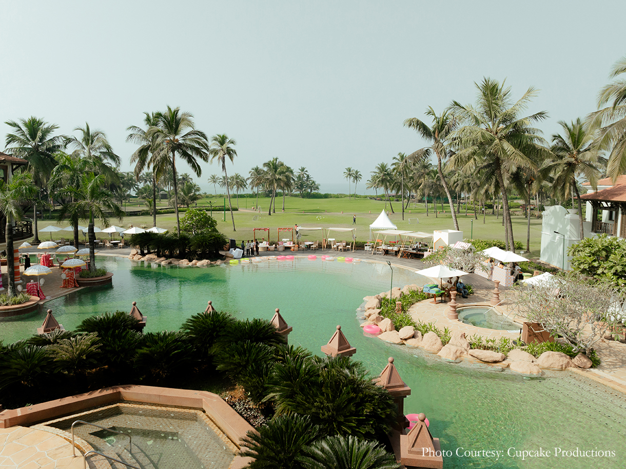 In honor of their first meeting at an ITC property, the couple chose the ITC Grand Goa as the venue for their wedding. Just a short 20-minute drive from the airport, the beachfront resort boasts the unique charm of Indo-Portuguese vintage architecture, along with a selection of bespoke indoor and outdoor banquet spaces, ideal for hosting diverse events, all complemented by exquisite culinary offerings.