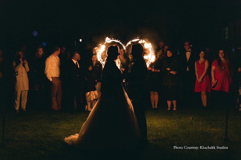 The guests witnessed the first dance of the couple as man and wife before everyone hit the dance floor. The guests did a limbo dance and then grooved to the beats of hit Bollywood music. There was food, drinks, games, and fireworks that made their day very special and resulted in beautiful memories.