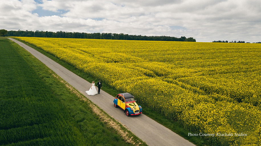 Vicky and Shubham’s love for travelling made them host two weddings, one in Jaipur according to traditional Marwari rituals, and the other one in a German Catholic style at a rustic farm in Germany. Guests arrived from 18 countries to witness the coming together of the two cultures, and all the action was beautifully captured by Khachakk Studios.