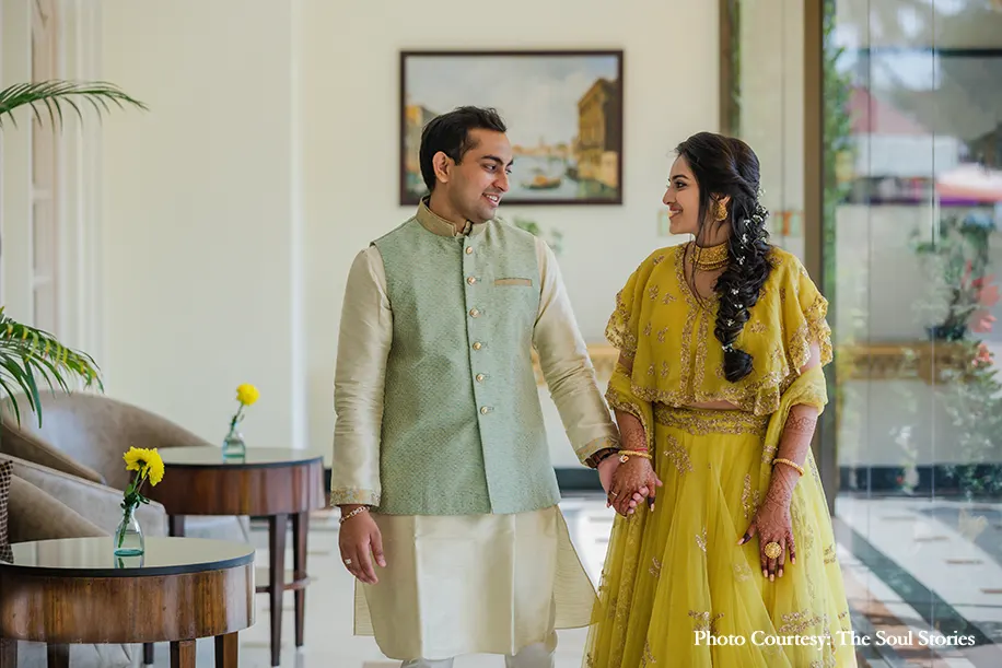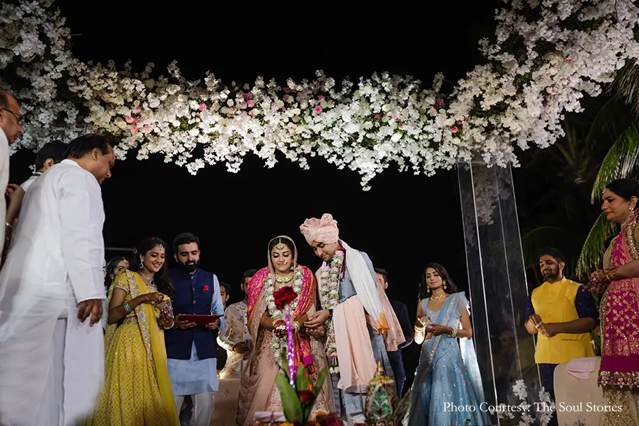 Planning a wedding during the pandemic is undoubtedly a hectic process but with the right team in tow, it’s a no-brainer! To helm their wedding squad the duo chose ANB Weddings and Events who unhesitatingly walked the extra mile to ensure the bride’s vision came to life. Viyomi shares, “Working with ANB Wedding and Events was such a wonderful experience. They were very tuned to the way weddings were done at Taj which was perfect for us as they understood our brief clearly. Their team supported us through every aspect right from booking rooms for the family and guests to all negotiations, setting the menu and to brainstorming with us while coordinating with the decorator. We would happily work with them again!”