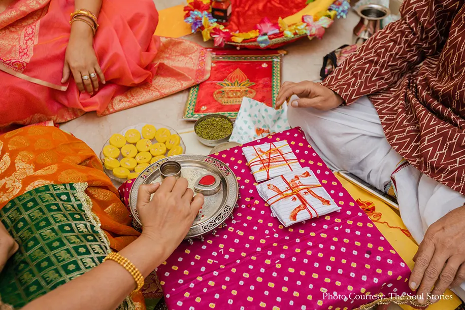 An auspicious ceremony where permission is sought from Mother Earth to build a mandap, the couple’s Mandap Mahurat ceremony was a simple one where their parents prayed to the deities. Cheerful as ever, the couple made the most of this occasion by reveling with their family once the rituals were done.