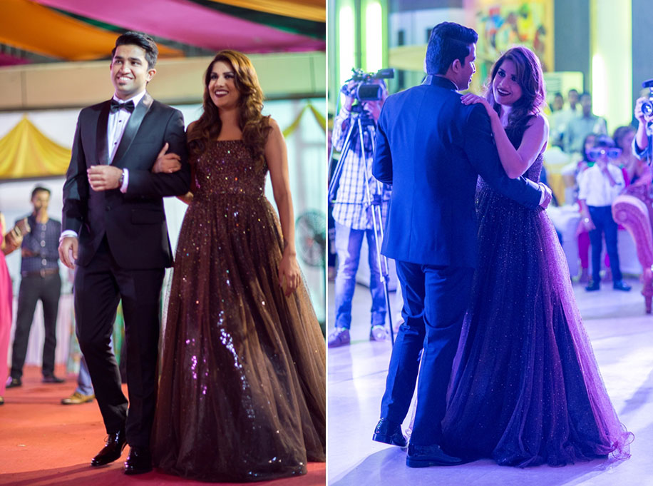 “Our engagement was hosted at the Mini Punjab lakeside hall in Powai. We had a ‘black tie’ event so all the girls wore gowns and the boys, tuxedos. It was a private affair with only close friends and family attending the event. We had a special cake from Love Sugar Dough (LSD) which depicted our love story. Rahul wore a classic black tuxedo with a bow tie and I wore a gown by Sujata and Sanjay which made me look like a princess.”