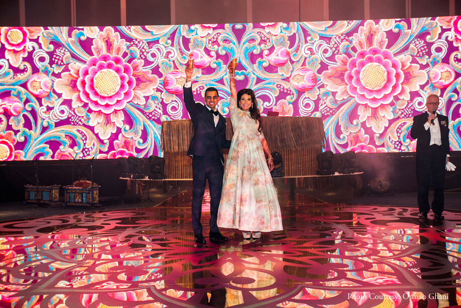 “Our Hindu ceremony and reception took place on the same day, at the Intercontinental O2 hotel overlooking Canary Wharf and the London skyline. The venue is huge and Amore and their talented production and design team had a challenging task making it feel intimate.”