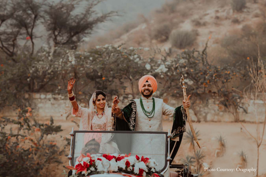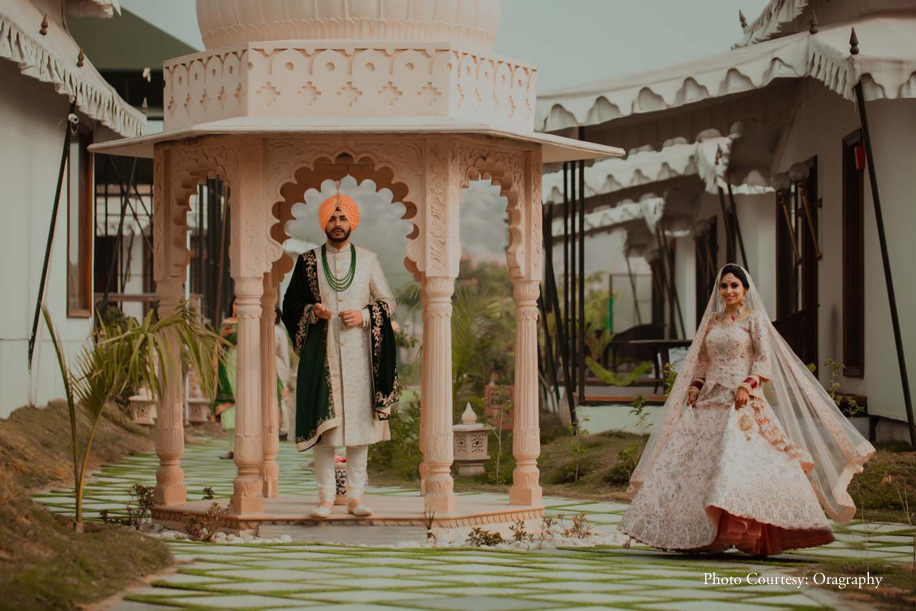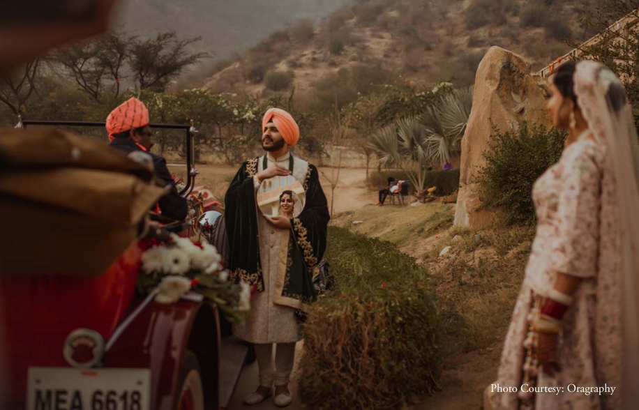 From the groom’s remarkable entry on an elephant to the regal ensembles of the couple, Zorawar and Jasmine’s destination wedding at the Rajasthali Resort and Spa in Jaipur was a grand affair that was planned by WeddingSutra Favorite – Fiestro Events. Deftly shot by WeddingSutra Favorite – Oragraphy, the occasion certainly served as an inspiration to other couples. The groom shares details from the wedding below.