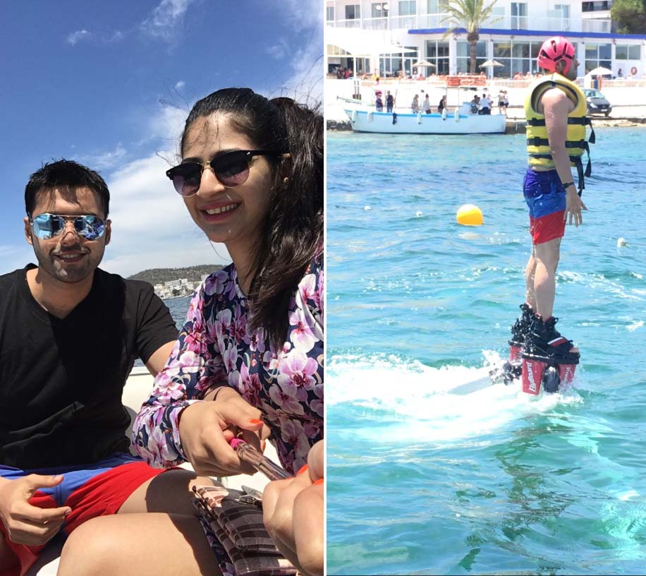 We checked into the Hard Rock Hotel at Playa d’en Bossa – a luxury hotel that combines fun with comfort. We attended an Opening Session by David Guetta – a party where it seemed like the whole of Ibiza attended. We were in love already! Then we went to a four-hour nonstop boat party, the craziest we have ever seen. My husband had a go at flyboarding which he loved.