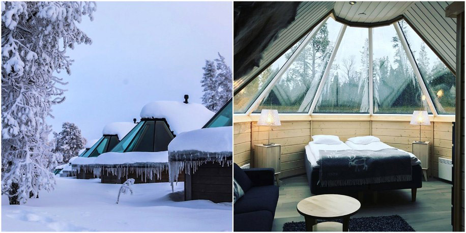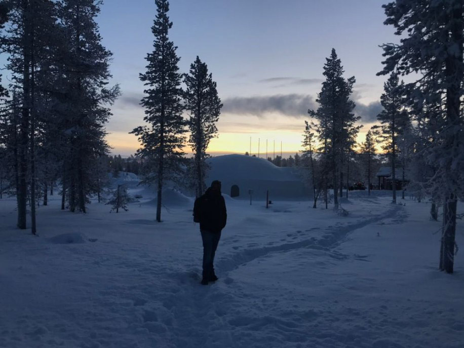 “We saw the Northern Lights from our bed through our glass ceiling. We had just gotten back from our snowmobile tour, where we went deep into the forest looking for the Northern Lights in -30 temperatures. When we finally got home to our heated room tired from a day full of activities, we were extremely lucky to spot the Northern Lights from our bed – it was like magic in the sky on Christmas Eve.”