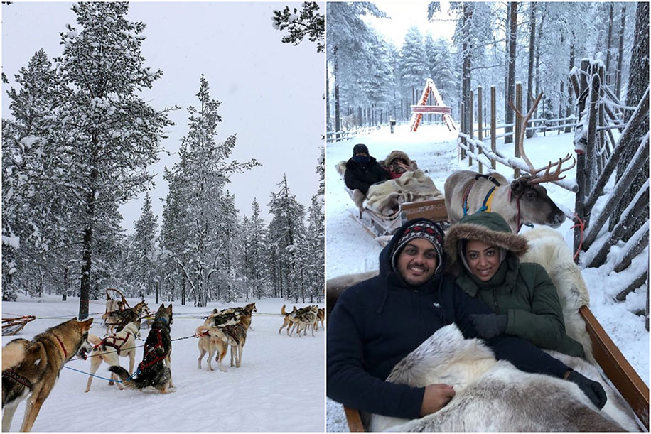 Born and raised in Dubai, Anjali and Chirag wanted to go somewhere that was festive with the Christmas spirit for their honeymoon. They opted to avoid the usual luxurious beach destinations and flew to the snow-capped environs of Finland. Take a peek at their adventures there.