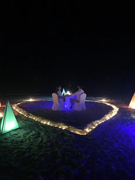 The best meal of the trip was our honeymoon dinner arranged by the Resort, which was set up right by the shore with lights surrounding our table in the shape of a heart. They curated a special menu for us and the best dish hands down was the truffle Risotto.”