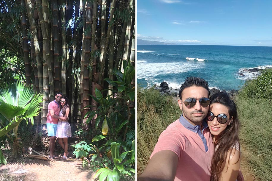 “In Maui, we drove to the Hana and Haleakala regions. While driving to Hana, there were random waterfalls, springs, hidden beaches and natural pools, and we kept getting off the car and jumping into them. All you need is a lot of sunscreen, swimsuit and towels in the car for enjoying the best moments and memories! Also, my first Karwa Chauth was in Hawaii where Harit and I were driving around the island trying to get the best glimpse of the moon! That was an extremely unusual Karwa Chauth!”