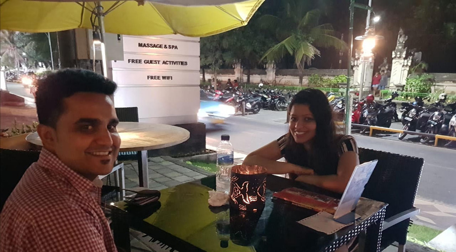 Minnu and Sreejit’s wanted some respite from the heat and the chance to do some water sports on their honeymoon. That and more awaited them in blissful Bali where panoramic views, delectable cuisine, and even a fever brought them closer together.