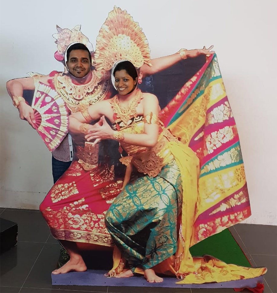 I wasn’t really looking to get married, but my relatives kept telling me about this talented, passionate artist who’d had a few exhibitions across several art galleries. I didn’t even know her name but then, as I was looking for a partner, I found her profile online. She was based in Dubai and I’d grown up in India but we did connect online and finally met in God’s Own Country, Kerala.