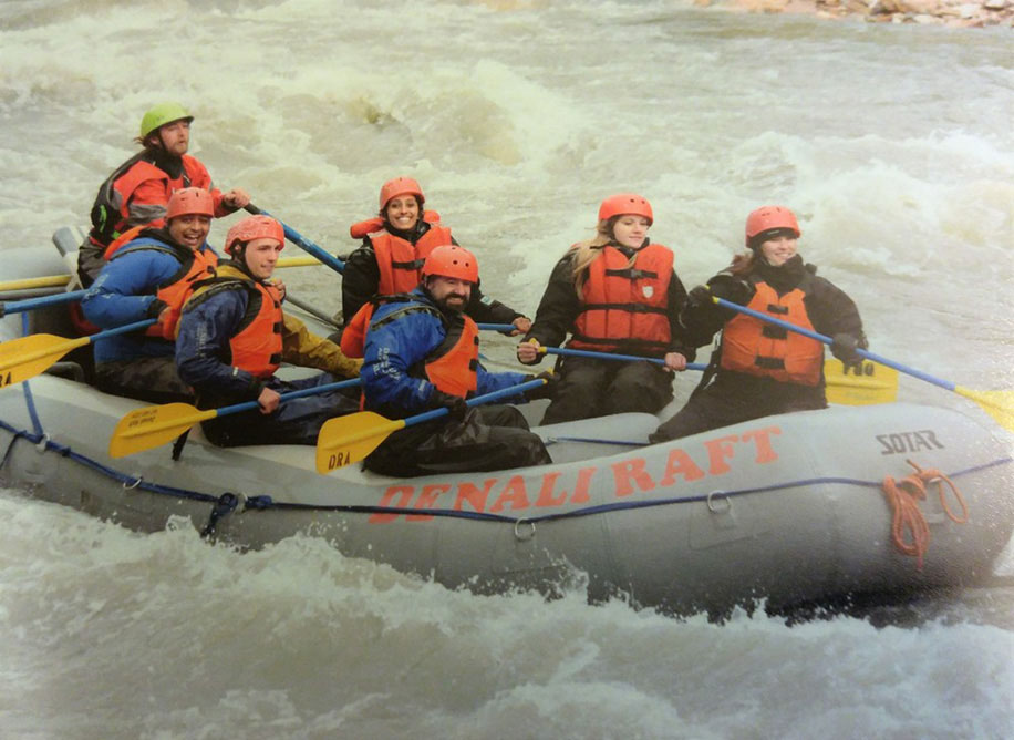 “We also made an impromptu decision to join a White Water Rafting tour with Denali Rafts during our visit to Denali National Park. We layered up in our wet suits and jumped into a raft with four others to embrace the Nenana river. Our guide helped to ease our nerves as we swished past Class 3, Class 4, and even Class 5 rapids. As we drew closer to the last one-mile stretch on the river where the water was calmer, the guide suggested we jump into the river (only if we wanted to)! I thought he was crazy, and then the next thing you know, all six raft buddies were in the freezing water, holding onto our rafts with a death grip! It was the best experience ever!” recalls Nisha.