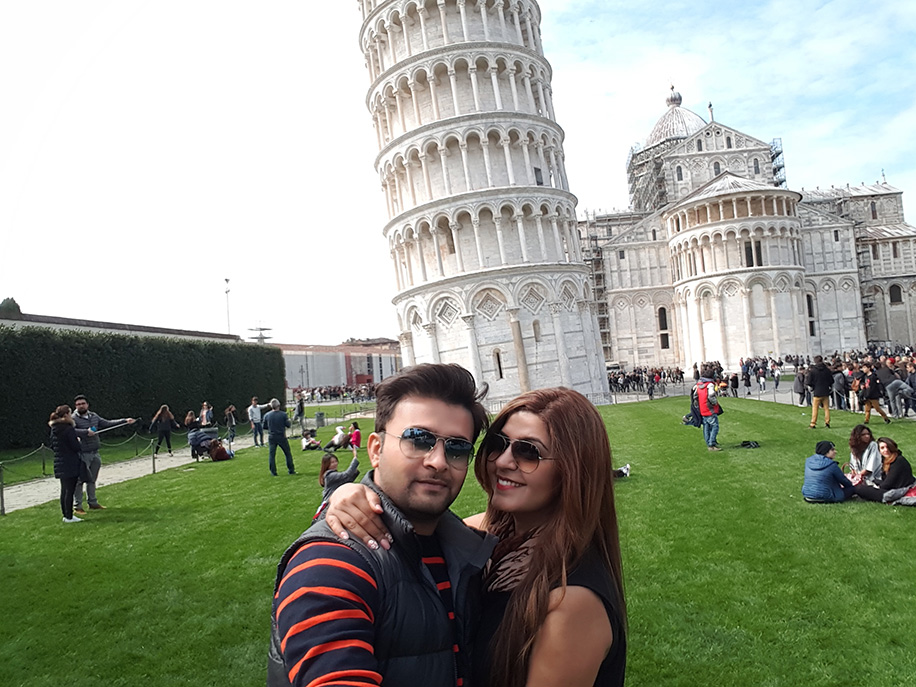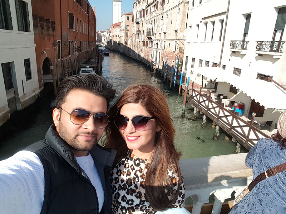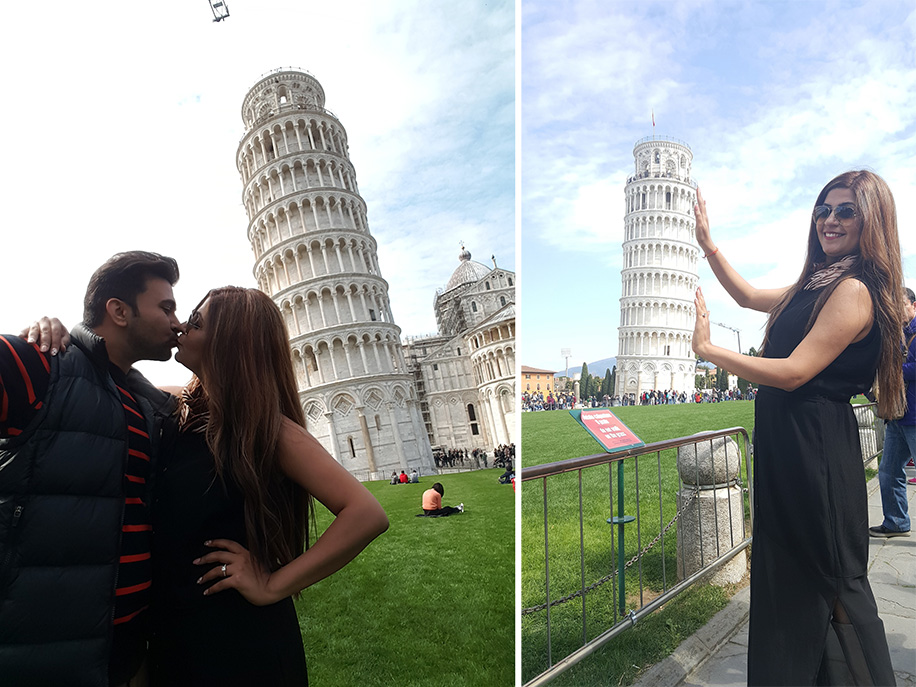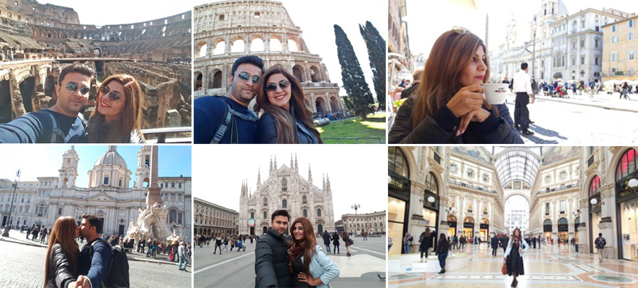 The couple visited Rome, Vatican City, Naples, the Ruins of Pompeii, Florence, Venice, Pisa, Milan, FoxTown Outlet stores in Switzerland during their honeymoon. In Rome they stayed at Hotel Caprice, while in Florence they booked into Hotel Universo and Santa Maria Novella. From Florence, they went to Pisa on a guided tour. In Milan, Ridhima and Lalit put up at the Hotel Carrobbio and enjoyed exploring the city and shopping. The couple stayed at Hotel Paganelli in Venice, and loved the famous gondola ride and live music as Piazza San Marco (Saint Mark’s Square).