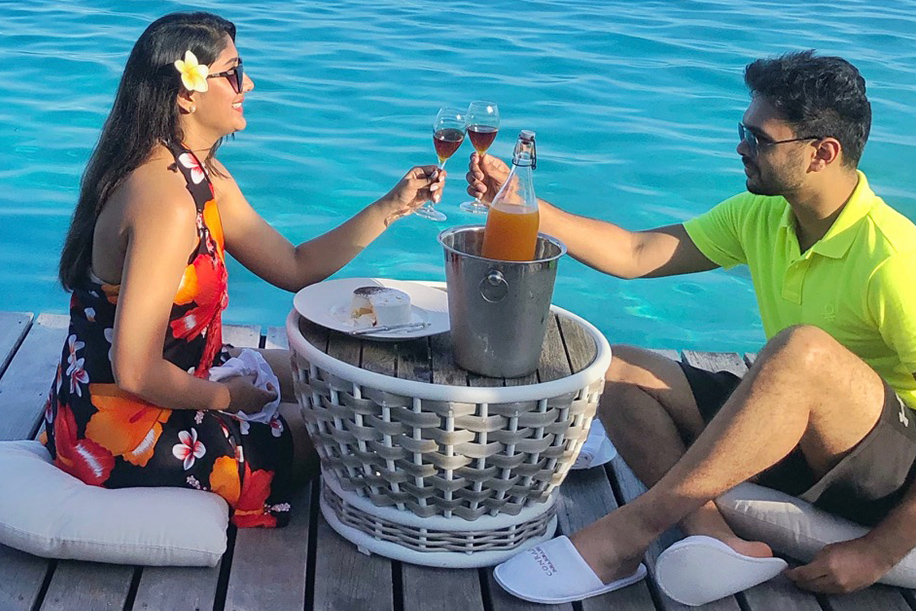 Monil shares, “Since Ruchika and I wanted to mix luxury and travel from the start, we set our sights on some of the luxury boutique hotels across the world. Bora Bora had always been on Ruchika’s list, so we zeroed in on it. As you can only go there from a few select locations in the world like Los Angeles or New Zealand, we chose the latter as it was more hospitable temperature-wise. The cherry on top, however, was our visit to beautiful Tahiti which one has to travel through to reach Bora Bora.”