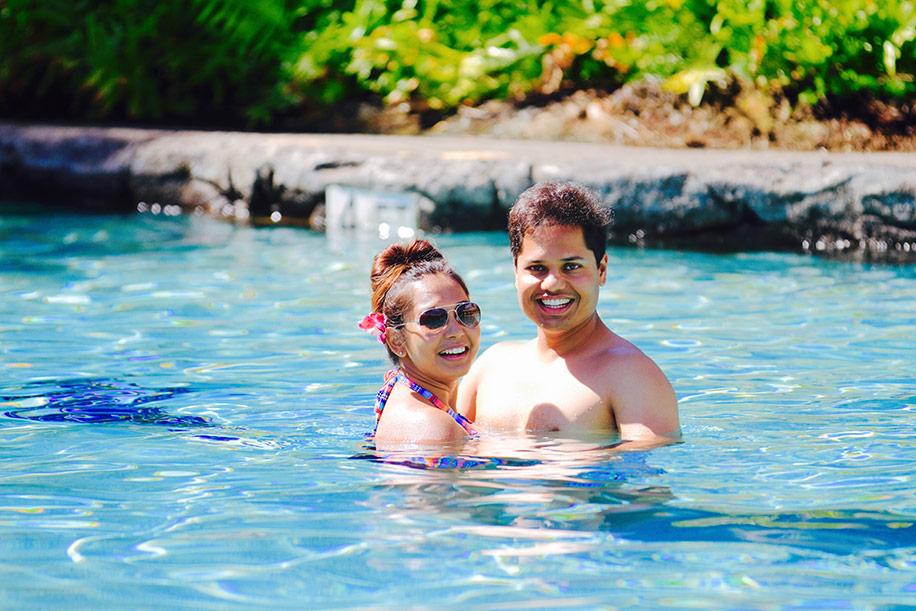 “We were just so pleased and grateful to be in the lap of nature but to be honest, the Grand Hyatt Kauai Resort and Spa that was our biggest honeymoon highlight. The resort is an oasis of absolute relaxation and we relished every moment of it. Even normal activities like lounging by the pool felt like an elevated experience. No wonder it’s George Clooney’s favorite retreat! All the rooms at the resort have contemporary Hawaiian decor and peek-a-boo showers (which become transparent with a flick of a switch!)