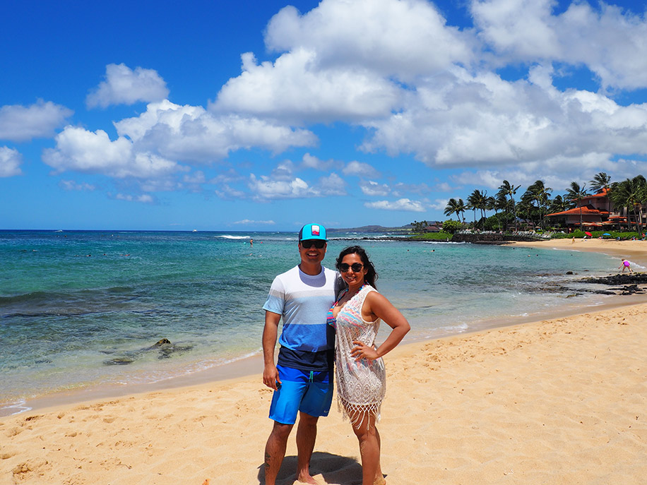 “We’d initially planned to go to the Polynesian Islands or the Cayman Islands but there were visa hassles. We’re both beach bums and so the Hawaiian island of Kauai seemed perfect for our honeymoon. Our idea was to just relax and enjoy our time together amidst nature and some gorgeous beaches.”