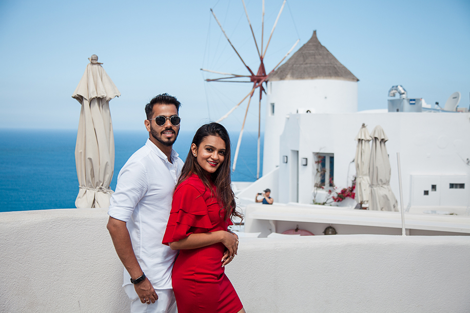 Discussing the thought behind planning a Greece honeymoon, Shivani says, “Since Niteesh and I had never travelled outside the country before, we wanted an international honeymoon. We both are water babies so we were looking for a place with incredible beaches and islands. Although we had shortlisted Spain and some parts of Eastern Europe, we zeroed down on Greece as it boasts of some amazing locales and quaint surroundings which would allow us to relax as a couple. Athens, Mykonos and Santorini proved to be amazing places and kicked off our love of international travel!