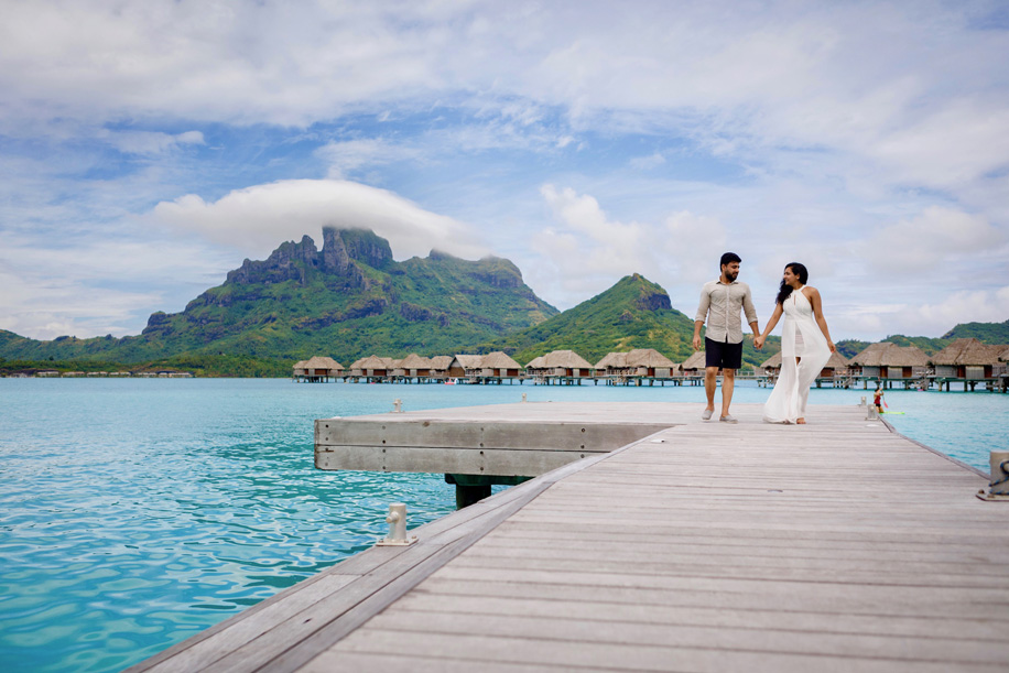 The turquoise waters of the stunning lagoon and overwater bungalows in Bora Bora enticed Karan and Soni to spend their long-awaited honeymoon there.