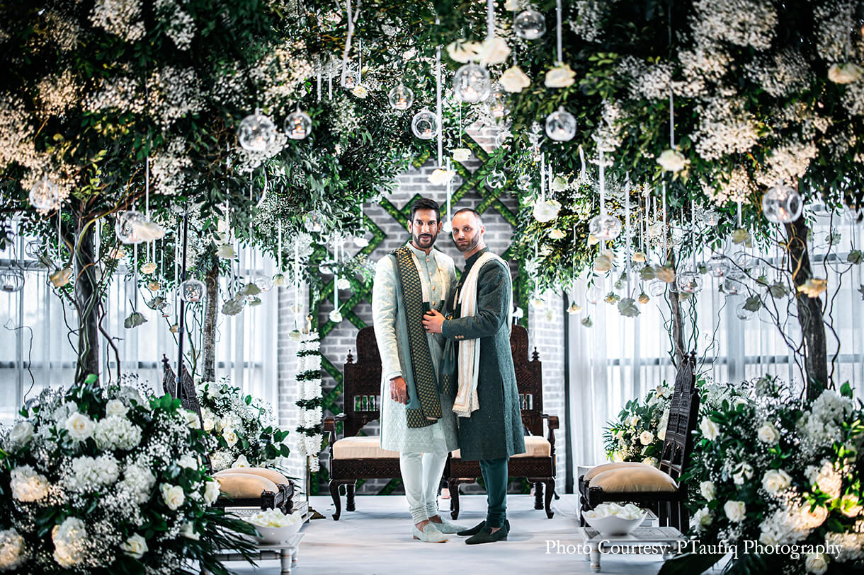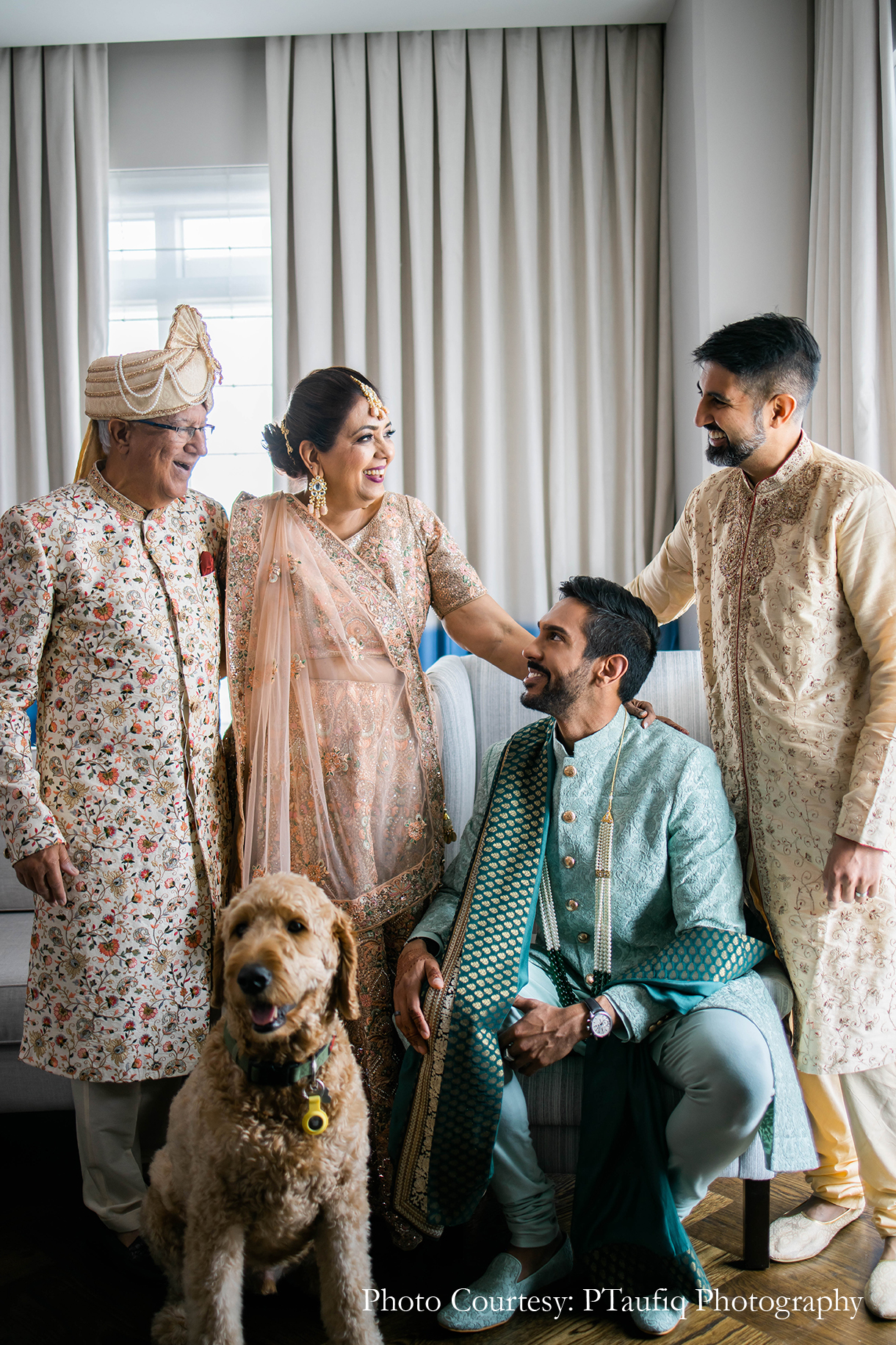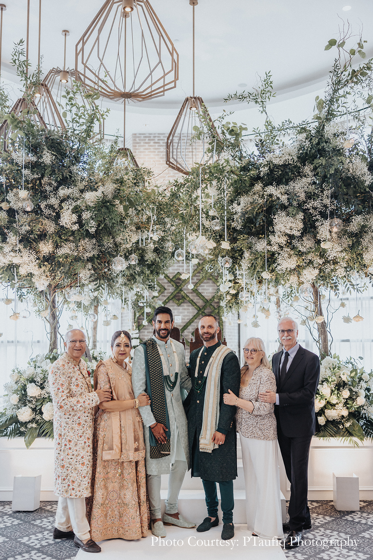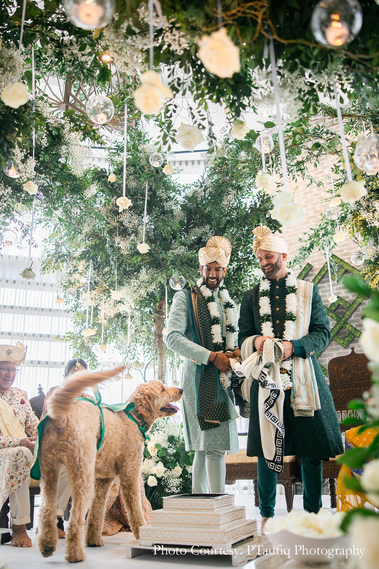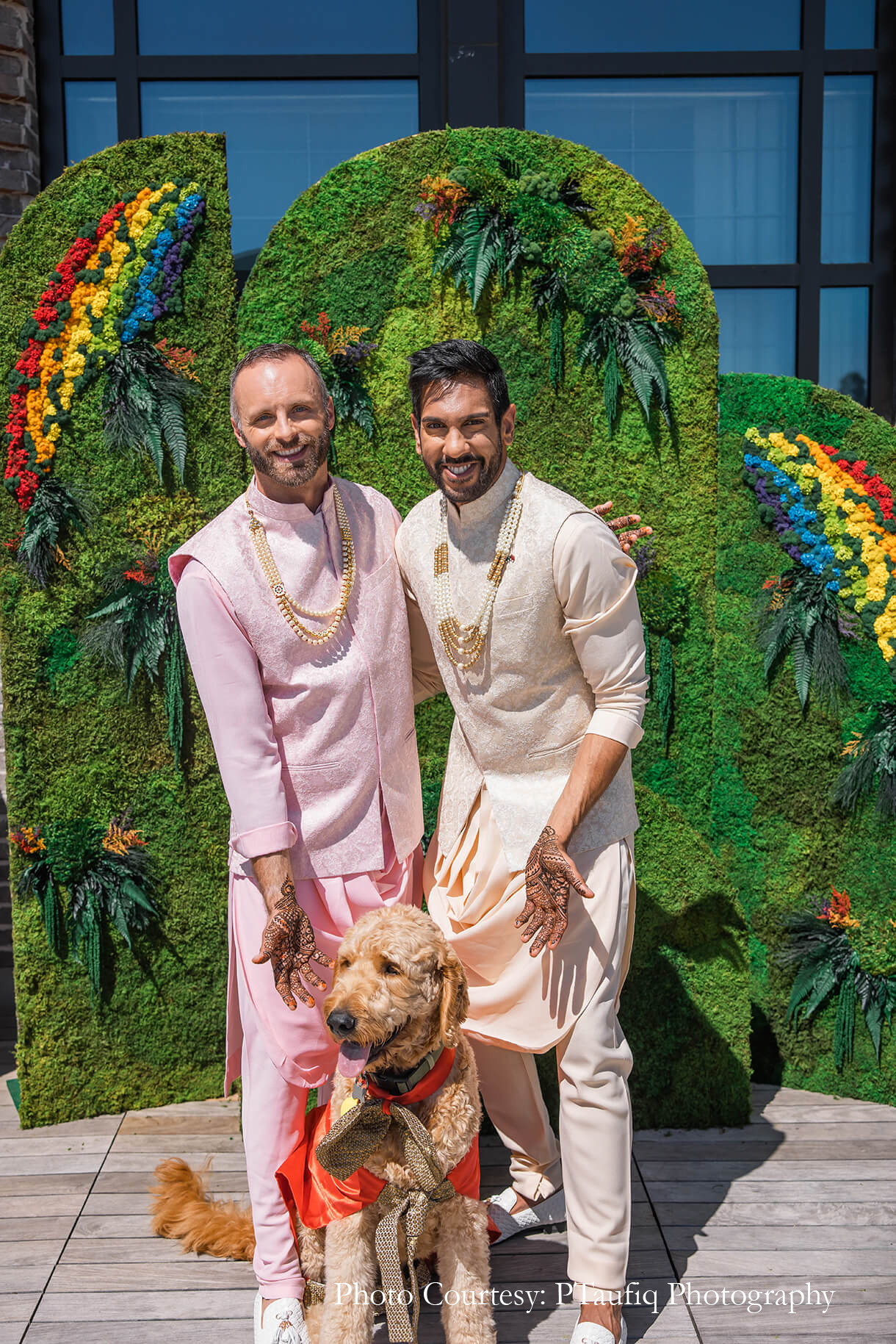 By the summer of 2020, I was ready to ask Nicholas to marry me, however, the last step I needed to take beforehand was to come out to my 93-year-old Nani, a Karachi native before the Partition. With her blessings, I asked Nicholas to marry me in November 2020. Sixteen months later we got married in a combined Hindu-Christian ceremony. Our dog Theo even walked the 7 phere with us on the mandap. It was a dream come true!”