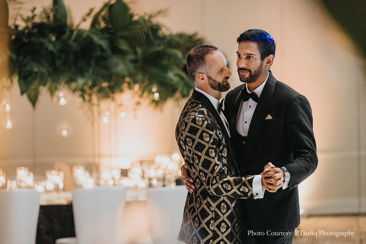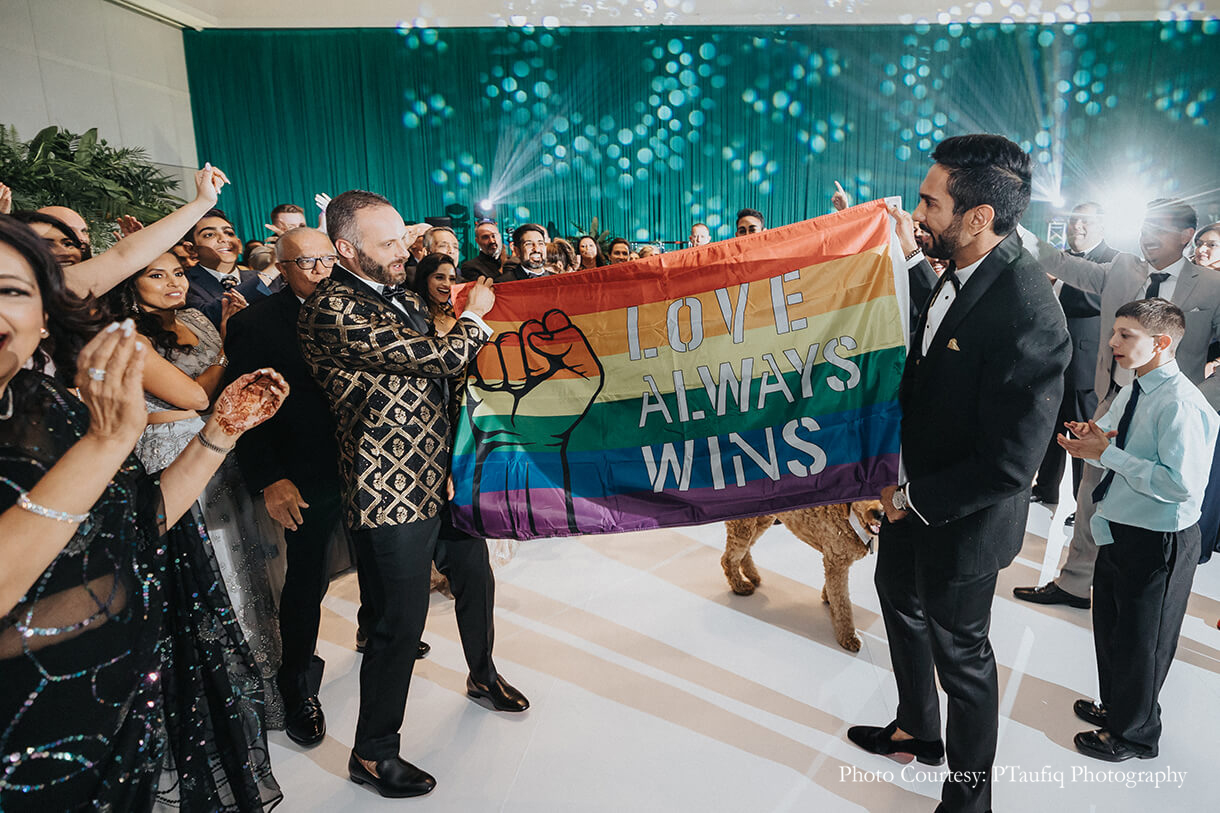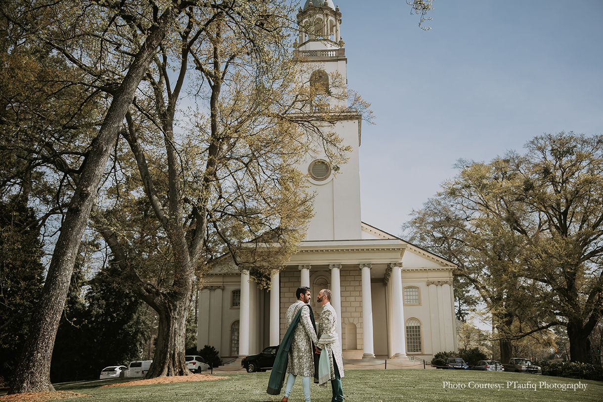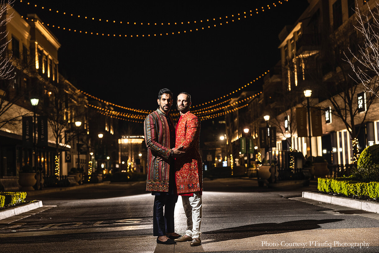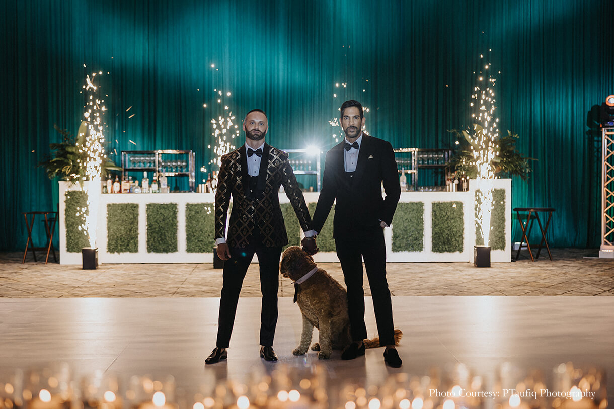By the summer of 2020, I was ready to ask Nicholas to marry me, however, the last step I needed to take beforehand was to come out to my 93-year-old Nani, a Karachi native before the Partition. With her blessings, I asked Nicholas to marry me in November 2020. Sixteen months later we got married in a combined Hindu-Christian ceremony. Our dog Theo even walked the 7 phere with us on the mandap. It was a dream come true!”