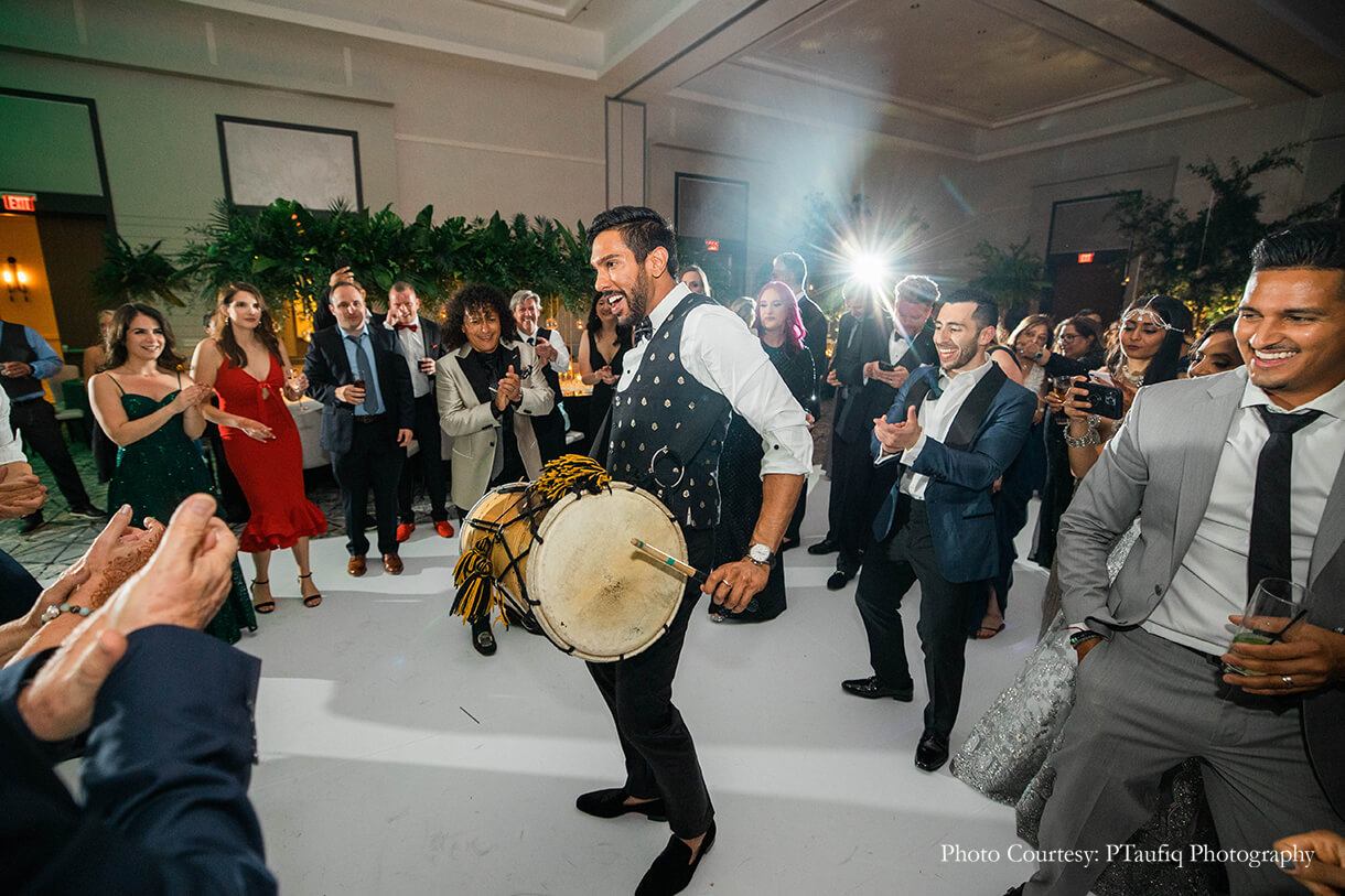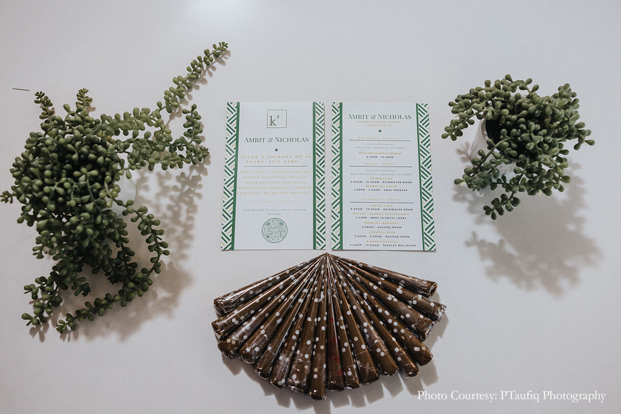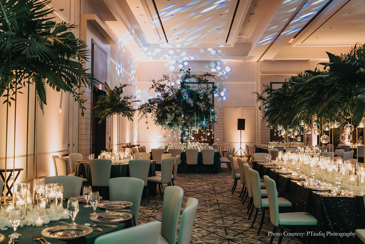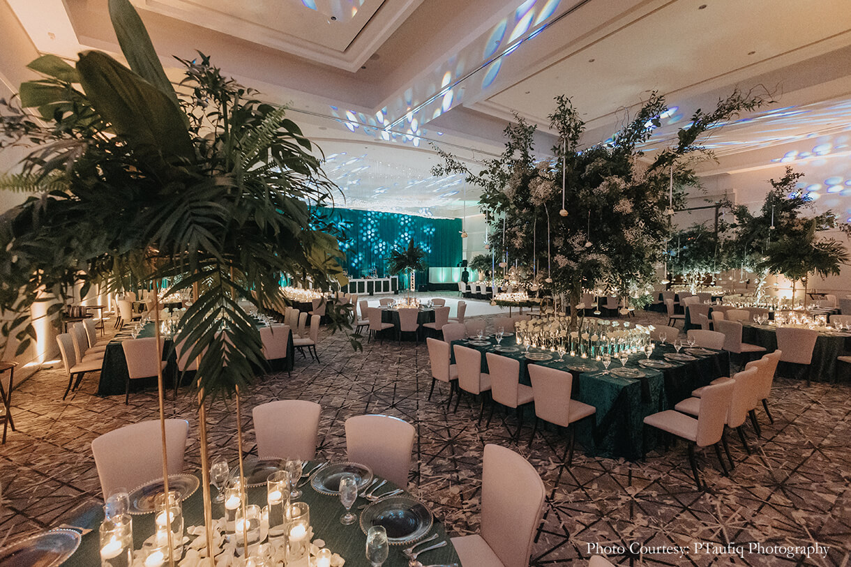 Amrit shares, “The reception also followed the greenery theme with ambience lighting. Everyone turned up in elegant cocktail attire and the event looked very sleek. Nicholas and I danced our hearts out!”