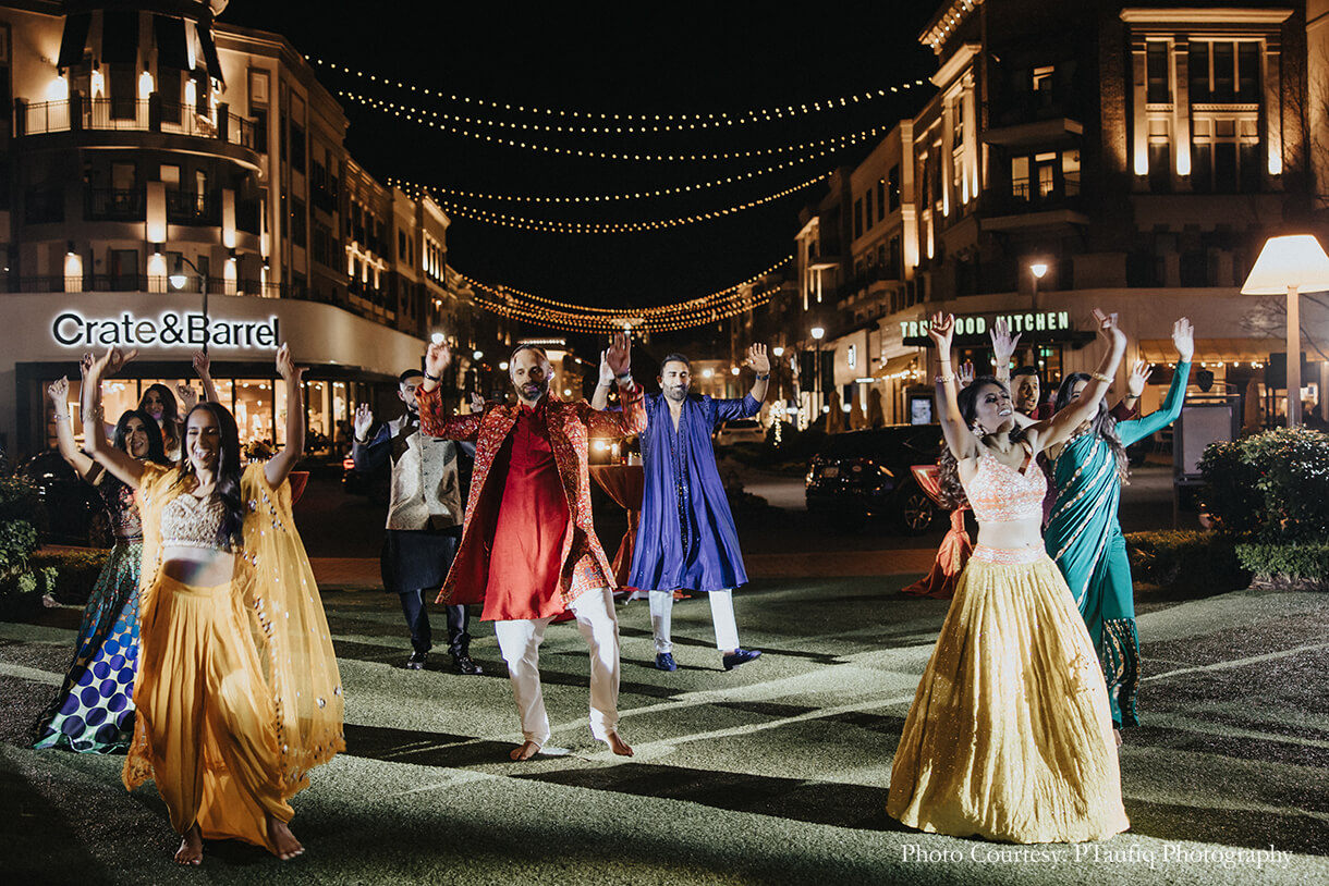 Amrit shares, “For the sangeet, we followed a vibrant color palette of reds, oranges and violets. Nicholas surprised everyone with his dance moves while I cheered him on along with all our loved ones! The venue was lit up with fairy lights and it was quite a magical evening as everyone shook a leg.”