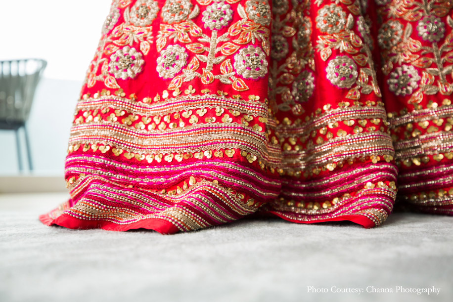 Brides Outfits: Falguni and Shane Peacock, Shantanu and Nikhil (Sangeet), JADE (Wedding), Manish Malhotra (Reception)