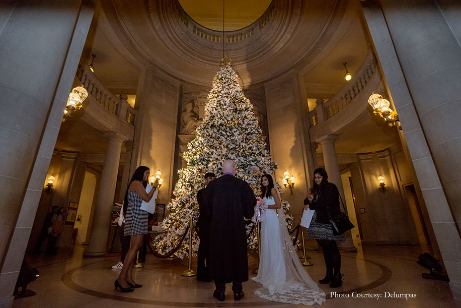 “We got married in San Francisco in December 2016. It was a very private function, with just us and a couple of close friends. Raj always wanted an intimate wedding ceremony with just our immediate families and loved ones around. However, our parents wanted a ‘big, fat Indian wedding’ so we decided on dual celebrations in New Delhi as well. We chose to get married in San Francisco as I live there. The architecture of the San Francisco City Hall which we chose as our wedding venue is simply breathtaking.