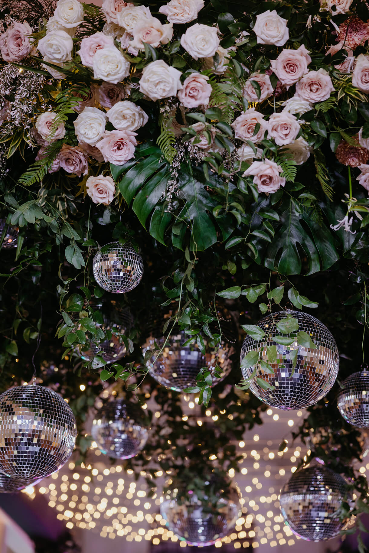 The couple wanted to follow up their dreamy garden wedding with a dose of glitz, glam, and disco magic. Imagined as a ‘tropical club night’, the Reception saw the exotic decor of flowers, foliage, disco balls, and more. Inspired by Deek’s love of dance music, they recreated an EDM concert vibe. The seating arrangement display was a large wall of records with each one being a table assignment. The guests were also given shawls to stay warm as they enjoyed and danced the night away. Anusha shares, “I have to give a special shout-out to our planner Shveta and her team who were fully responsible for the “flipping” of the reception from being outdoors to being indoors with the last-minute rains. I honestly just showed up to the party not knowing what to expect given the last-minute changes, and I cried upon seeing it, from adrenaline, relief, and above all, gratitude to our amazing planning team”.