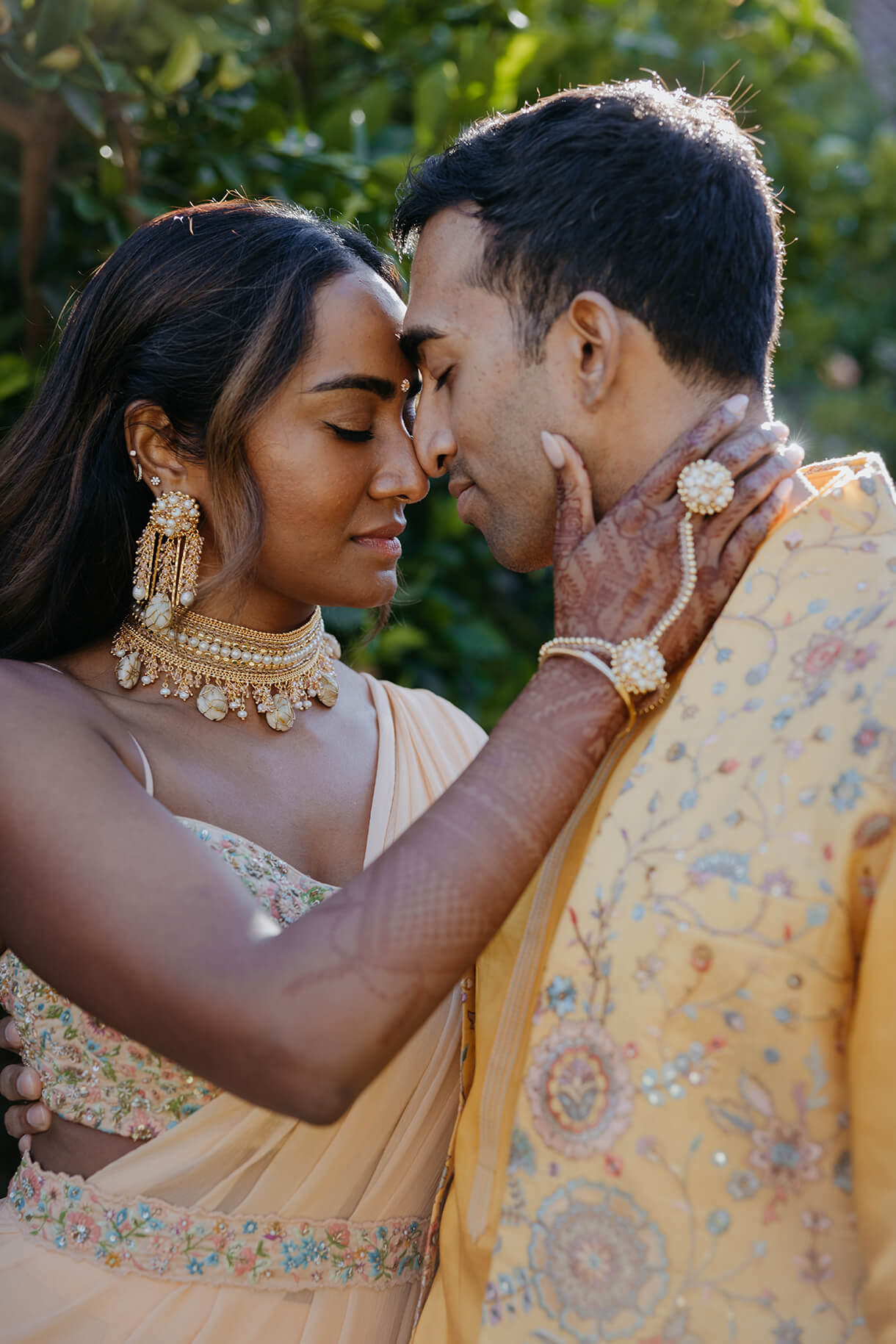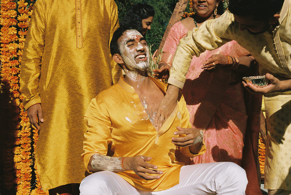 Groom’s Outfits: Telon (Haldi, Sangeet), Sabyasachi Mukherjee (Wedding), Enzo Custom Beverly Hills (Reception)
