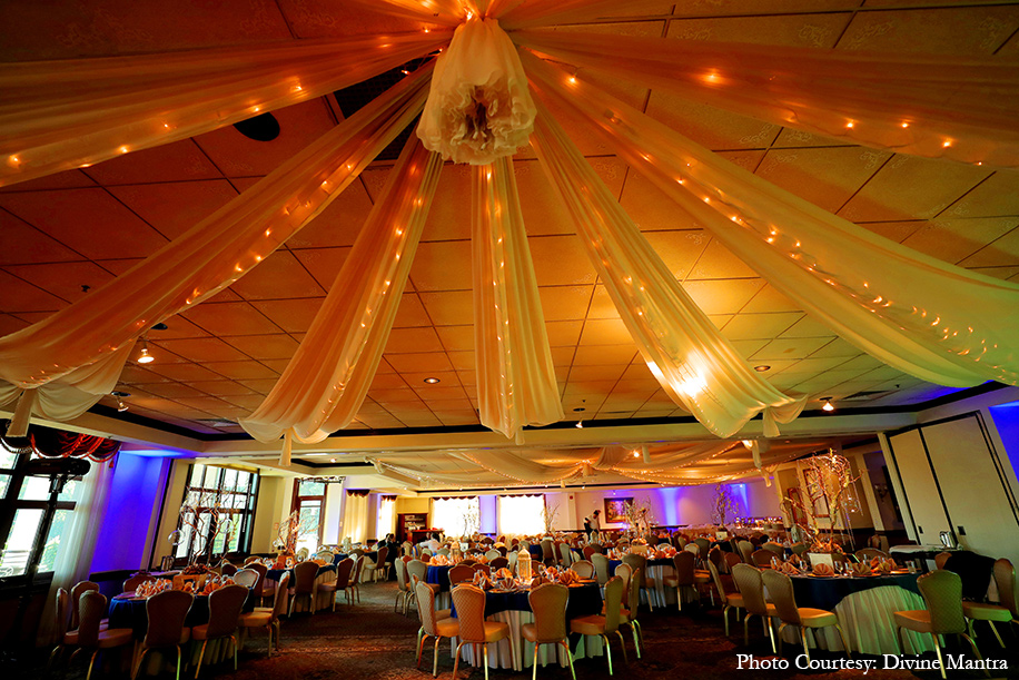 A lush country club in New Jersey got a vibrant look as Keta and Vaibhav's traditional Indian wedding unfolded there with colorful festivities and ethnic decor.