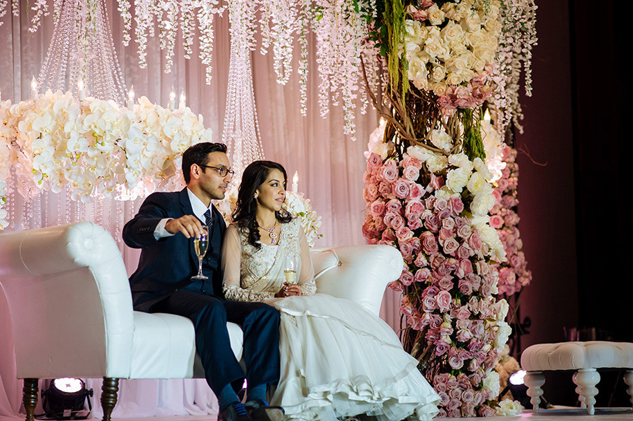 The stunning decor at Nisha and Emil’s dreamy wedding was one of the highlights with magnificent blooms, lustrous crystal strands and picture-perfect stage setups.