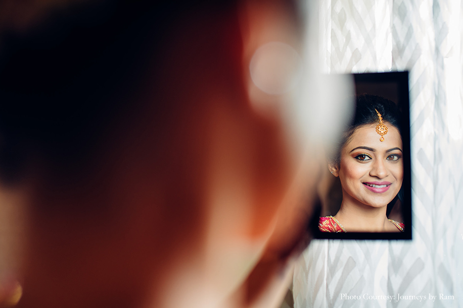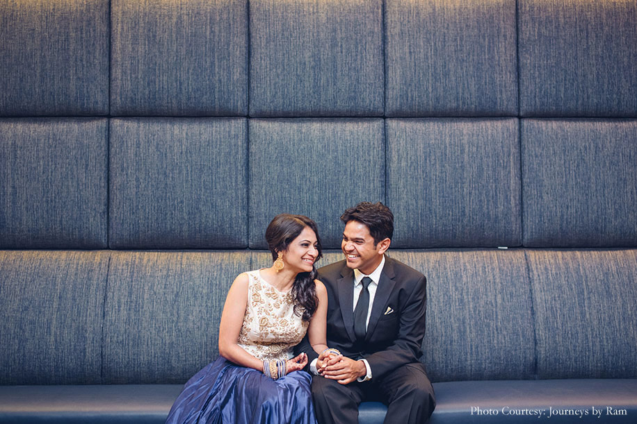 “Our wedding planning was fairly stress-free thanks to our parents and friends helping us. Right from selecting the wedding venues to the table centerpieces, everything was smooth sailing. We had Journeys by Ram taking care of our wedding photography, which turned out to be a wonderful decision. Not only is Ram exceptionally talented, but he is also one of the nicest people I’ve met. He made us feel so comfortable and managed to get such beautiful shots of us amidst all the commotion. Sahil still can’t believe how splendid the pictures turned out since he is very camera shy. We have such happy pictures from our wedding, that we have promised to look at the wedding pictures every time we fight just to remind ourselves of the happiest day of our lives. Swati and Reeti from Salon SBS in Fairfax, Virginia, are magicians. These sisters know exactly what needs to be done, from taking care of my hair and makeup to helping me drape my saree and putting together my jewellery. They made me look and feel beautiful on my special day.”