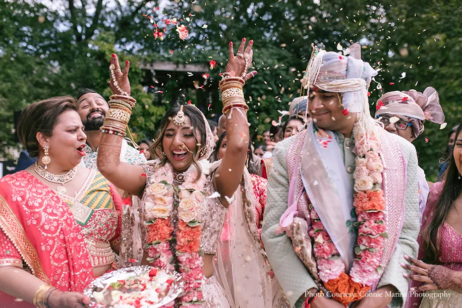Pearl and Abhishek were all geared up to tie the knot in grandeur but as fate would have it, the COVID-19 pandemic plunged their plans into chaos which in turn, forced them to make drastic changes. Recollecting the difficult time, Pearl shares, “We had to replan our wedding completely because of the pandemic. Our original plan was scrapped. However, both of us chose to keep the original date and do whatever we could with the time we had left. It was heartbreaking to send a notice to our 300+ wedding guests that we were no longer planning to have a big celebration. But fortunately, we found an amazing vendor to live-stream our wedding. We collaborated with MDM Entertainment to have a live cameraman to relay the baraat, capture the wedding ceremony, reception speeches, and performances especially for our family and friends around the world who couldn’t be present due to the pandemic. In the end, we were incredibly happy that we could celebrate our big day in a safe yet loving environment!”