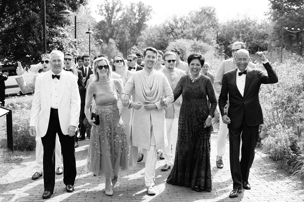 Daughter of former Pepsi Co. Chairman and CEO Indra Nooyi and Raj K. Nooyi, Preetha Nooyi married beau Rem Aiken Myers in a series of close-knit wedding celebrations that paid ode to both their cultures. Hosted at multiple venues, including, the bride’s home, this wedding flaunted a variety of magical themes inspired by the couple’s love for Shakespeare and their respective cultures.