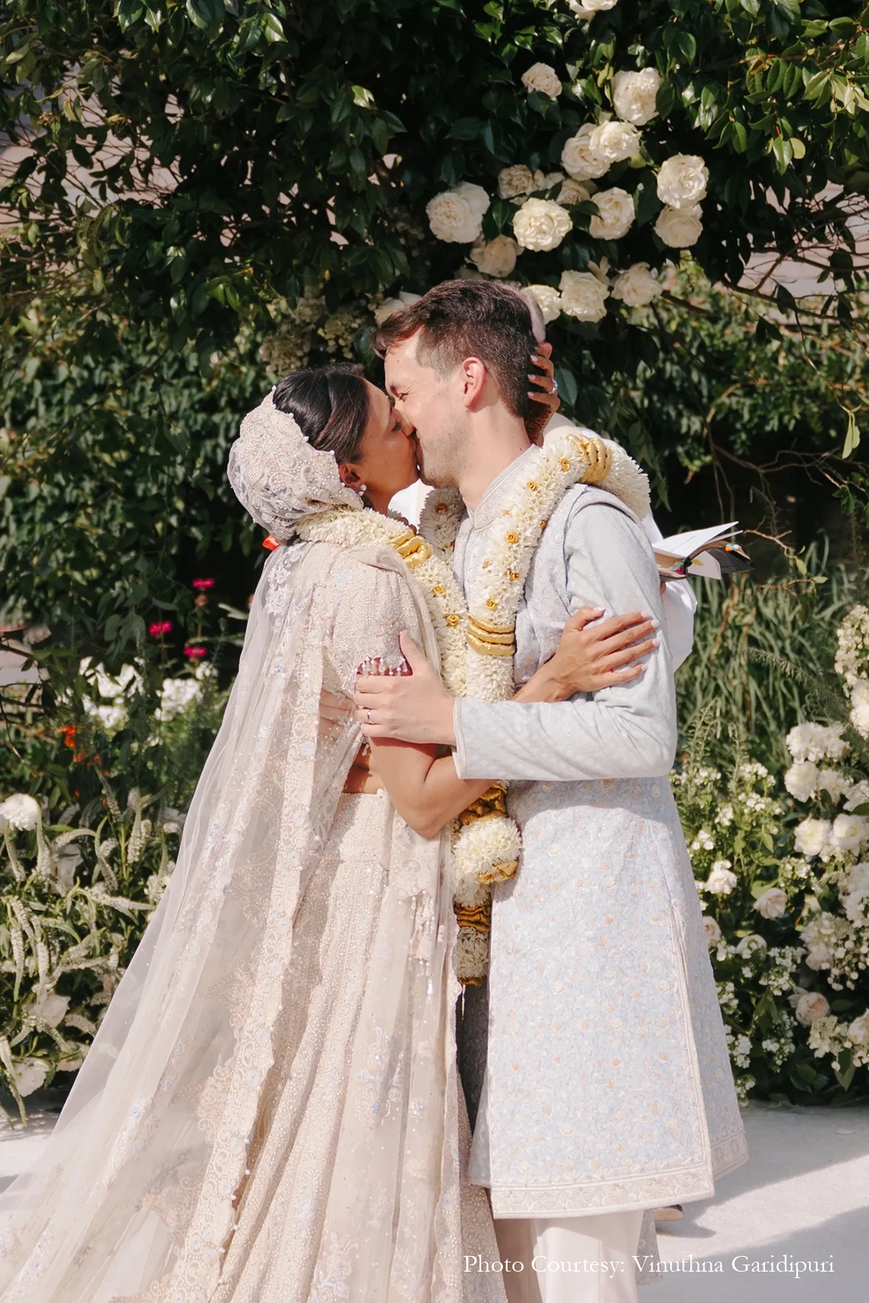 For her Hindu wedding, Preetha touched upon her roots as she donned a zari-woven silk saree. A moment filled with nostalgia for Preetha, the Hindu wedding brought in a flood of childhood memories that included summer days in Madras, delicious meals cooked by her grandmom, and of course, playful moments with her mom! Embracing Preetha’s culture, Rem also donned a traditional veshti during the ceremony.