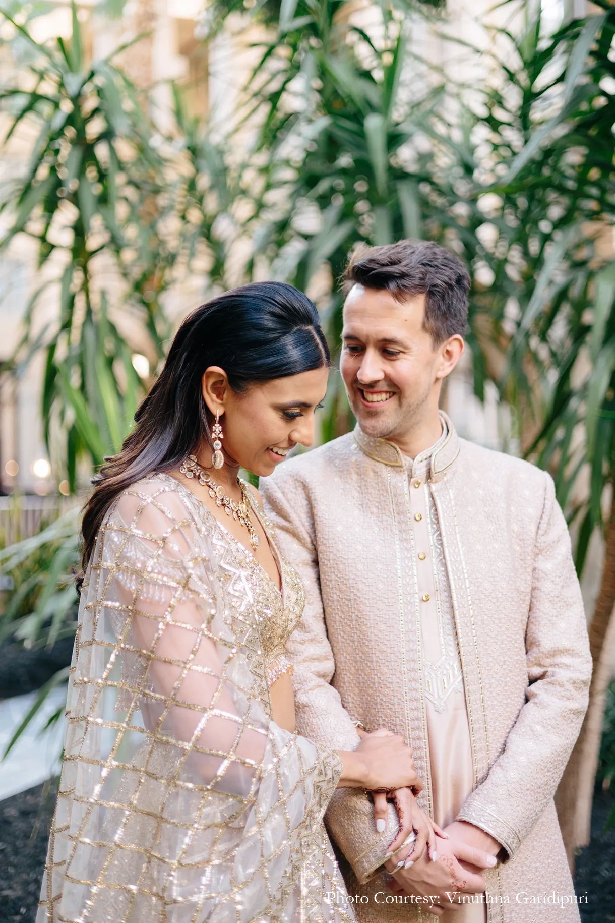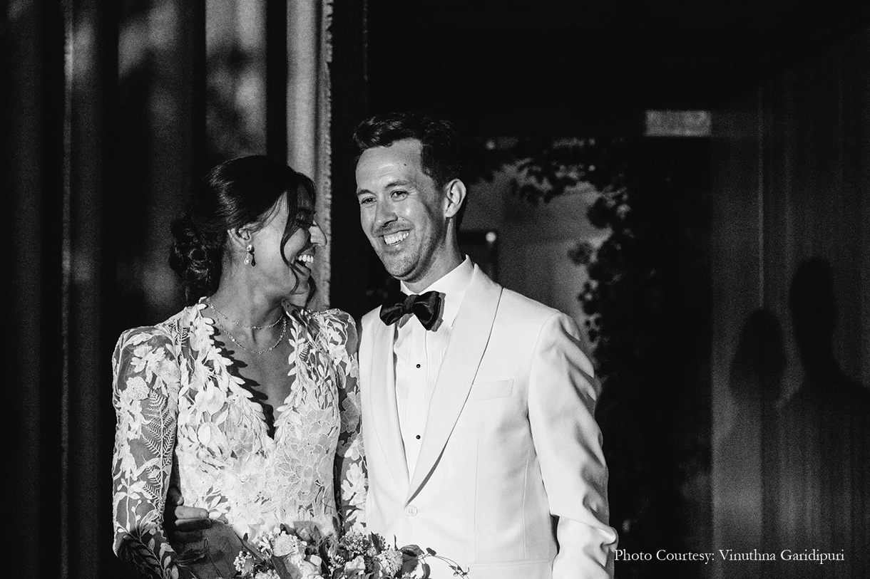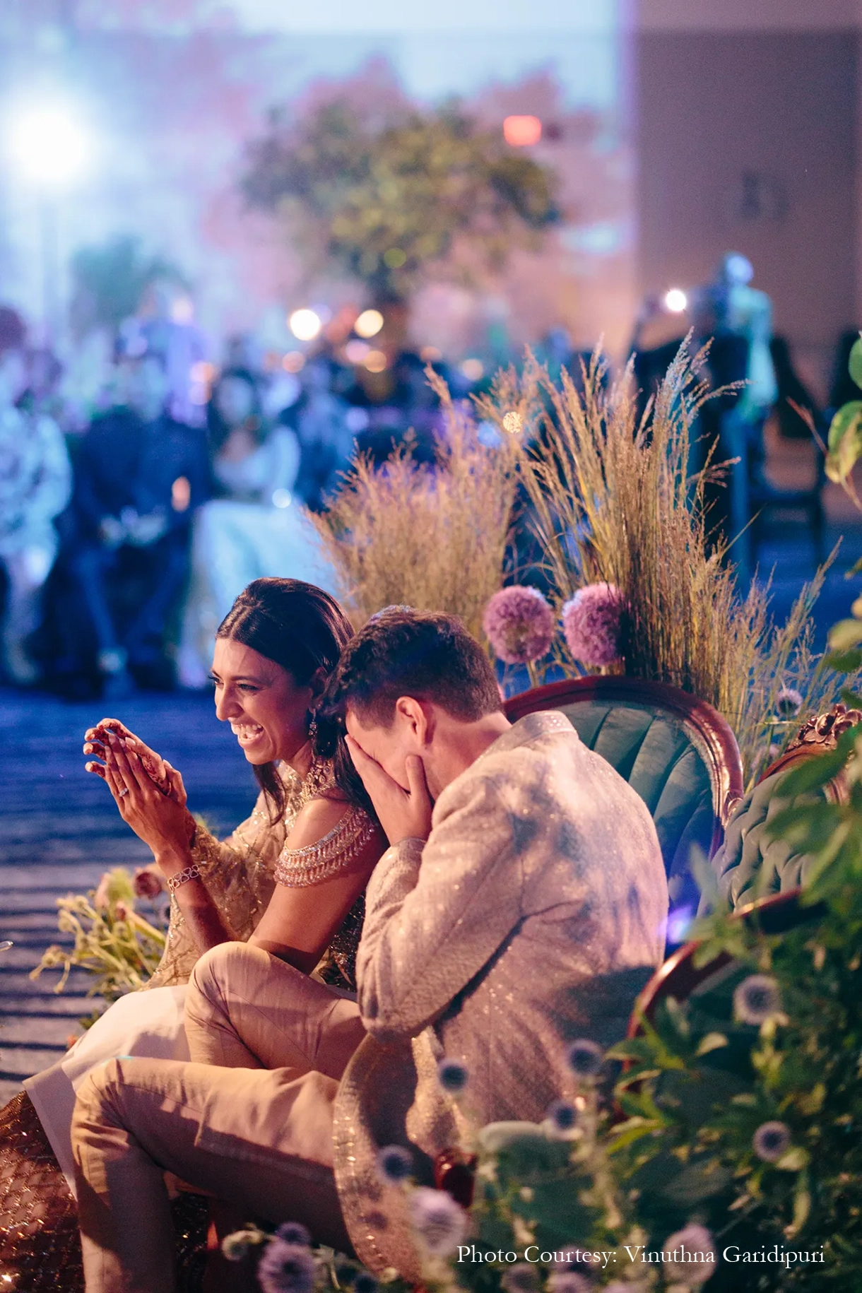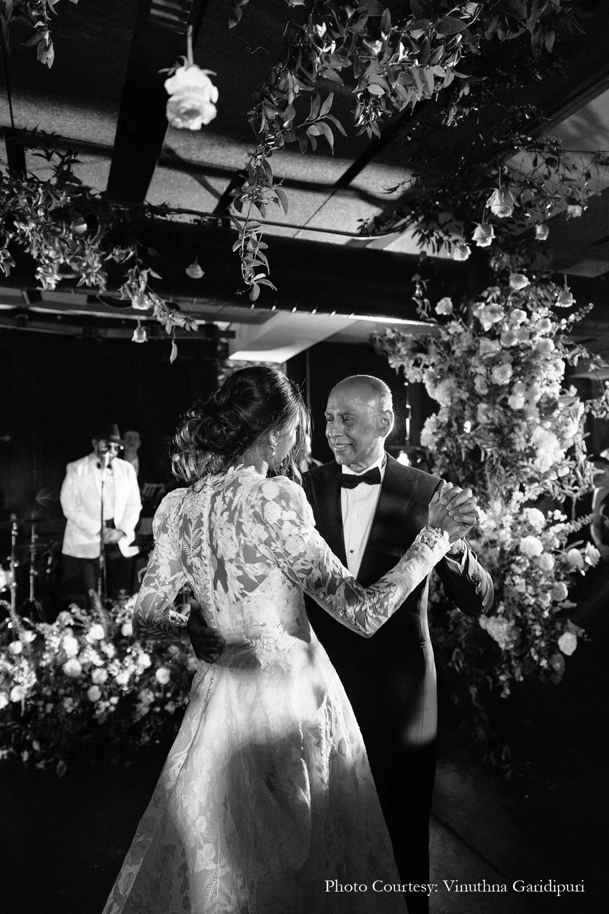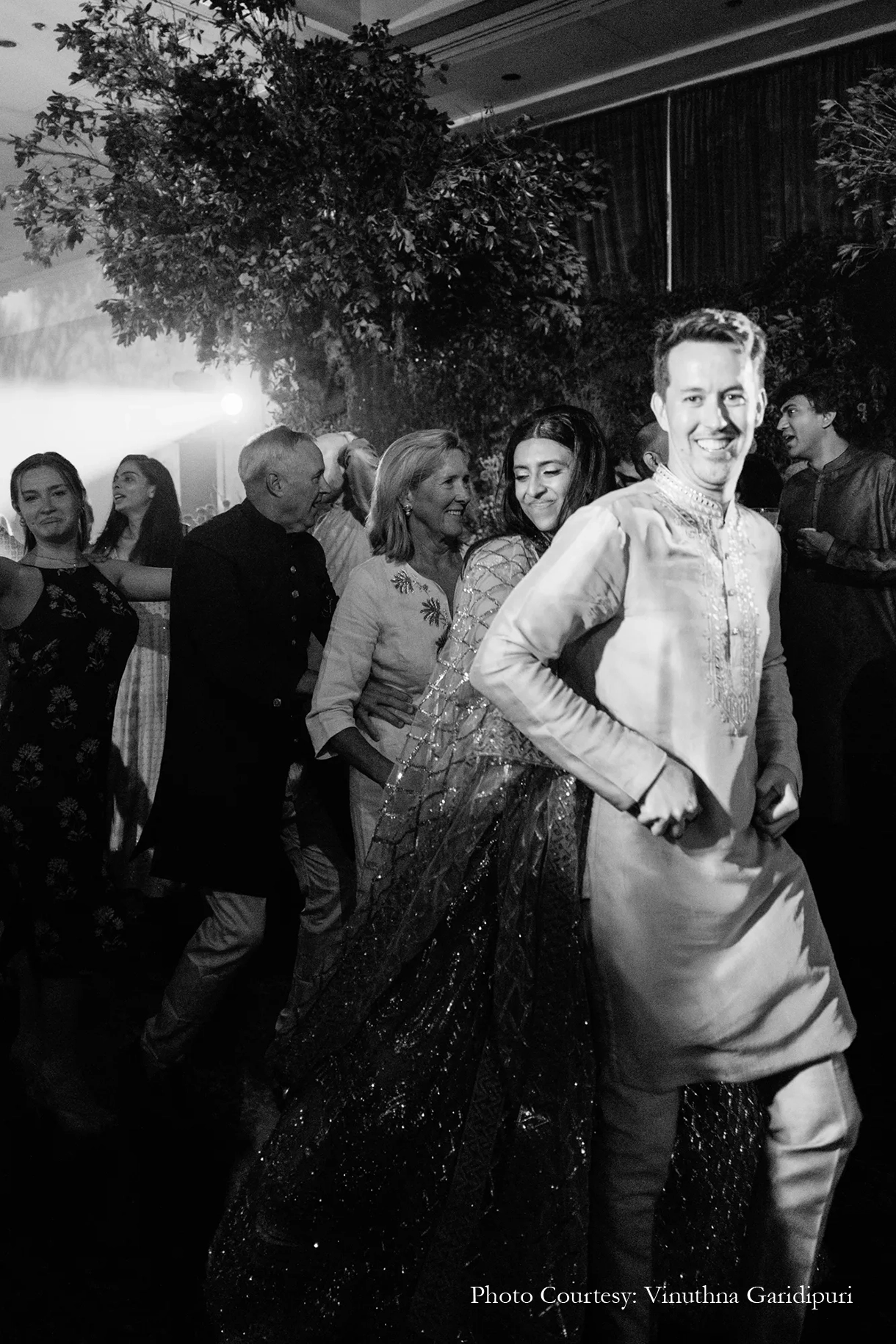 Preetha changed into a custom-made gown featuring the plants and birds her parents and in-laws loved for the reception garden inspired by the couple’s beloved play- Midsummer Night’s Dream. On the other hand, Rem donned a dapper tuxedo. Rem danced with his mom while Preeth shook a leg with her dad to nostalgic songs. This was followed by a high-octane after-party where the bride changed into a glamorous ensemble and danced the night away till the wee hours of the morning!