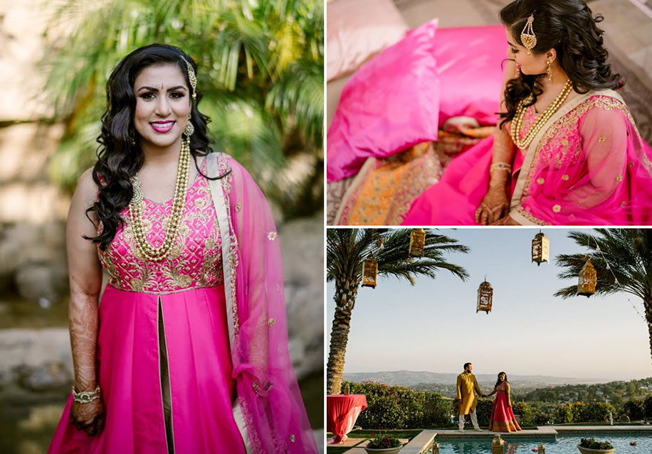 “Our mehndi, ‘garba’, and ‘pithi’ ceremonies were vibrant and colorful. The mehndi party was a Moroccan-themed affair, complete with a belly dancer and all! The garba event was traditional with a live band to entertain the entire crowd the whole night. The ‘pithi’ ceremony was held at my house, and I chose to keep it bright and festive for all to relax and enjoy”.