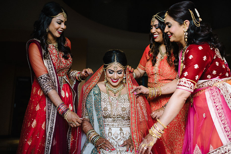 Bridal Makeup: Beauty by Nida Gazi (‘Garba’, Wedding, Reception), Andrea V Piramide (Mehndi, ‘Pithi’)
